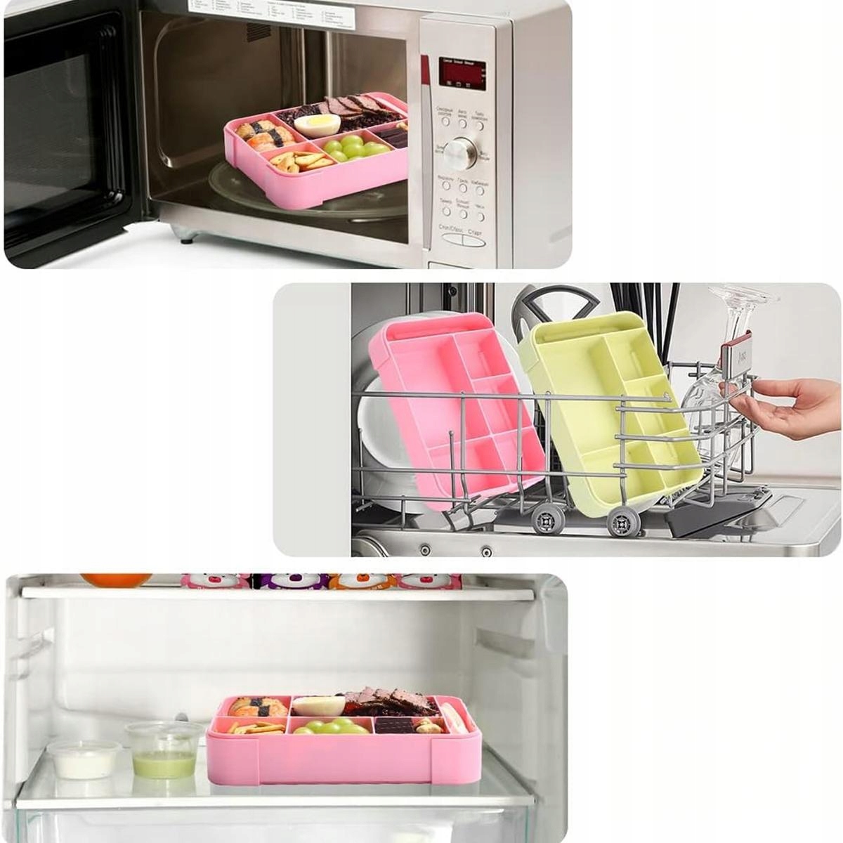 ✅ Детский ланч-бокс с отделениями - Ланч-бокс детского сада имеет 5 отделений для отдельной подачи основного блюда, фруктов, закусок, салата, бутербродов и соуса. В комплект также входит отдельная емкость для соуса с крышкой и набор ножей и вилок.