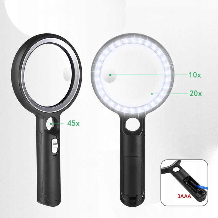 🔎 【Чтение увеличивающегося света】 обеспечивает увеличение в 10 раз, а также доступная линза 1 дюйма с увеличением 20x. На ручке есть линза с великолепным 45x (это выпуклое, их изображения простые 45 -й. CM/1,2 дюйма, и расстояние от объекта> 3 см/1,2 дюйма будет вызывать вращение 180 °). 【Идеальный дизайн ручки DIY】 имеет удобную, эргономическую ручку, а вогнутый рисунок позволяет легко удерживать и предотвращать падение. Проверка, ремонт и другие работы и хобби, которые требуют точности