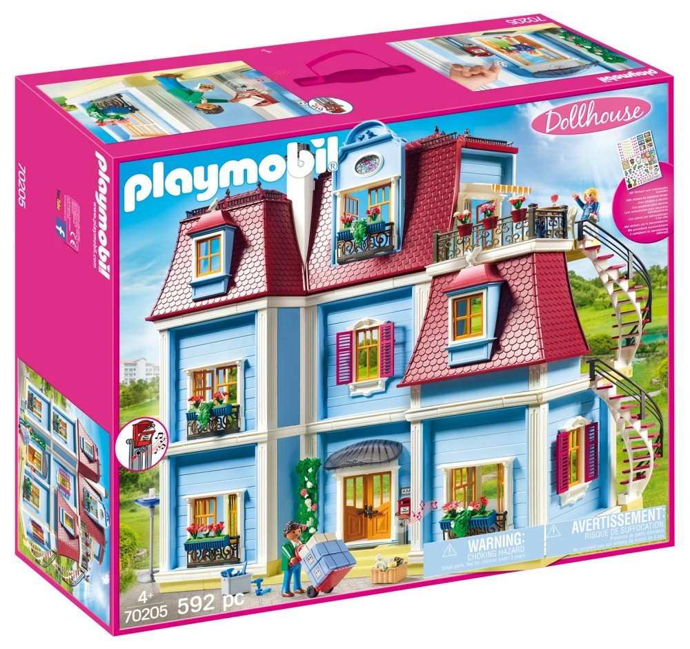 Большой кукольный домик 70205 – уникальное предложение для детей. В просторном доме имеется терраса, винтовая лестница, открывающаяся входная дверь, помещения для: кухни со столовой, гостиной, большой ванной комнаты, родительской спальни с швейным уголком и двух детских комнат. Рядом с дверью есть колокольчик, который издает звук. В предлагаемый комплект входят перечисленные ниже аксессуары, другая мебель и аксессуары для отдельных комнат доступны в дополнительных комплектах: 70206 Семейная кухня, 70207 Уютная гостиная, 70208 Спальня с швейным уголком, 70209 Подростковая комната, 70210 Детская комната, 70211 Ванная комната с ванной. , 70212 День рождения в саду (продается отдельно, при наличии)