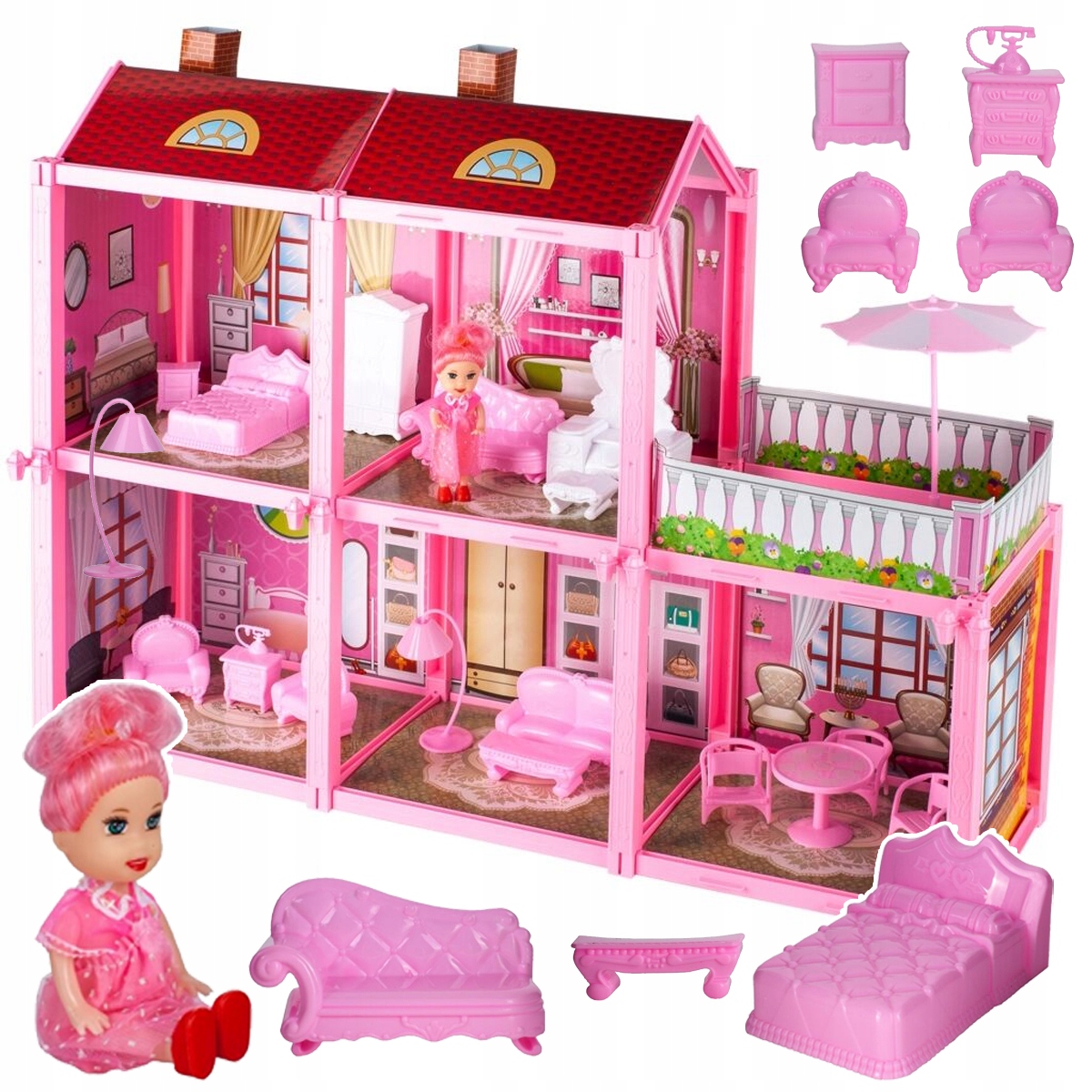 ВЕЛИКИЙ ЛЯЛЬКОВИЙ БУДИНОЧОК VILLA ТЕРАСА 2 ПОВЕРХИ 5 КІМНАТ + АКСЕСУАРИ МЕБЛІ ЛЯЛЬКА