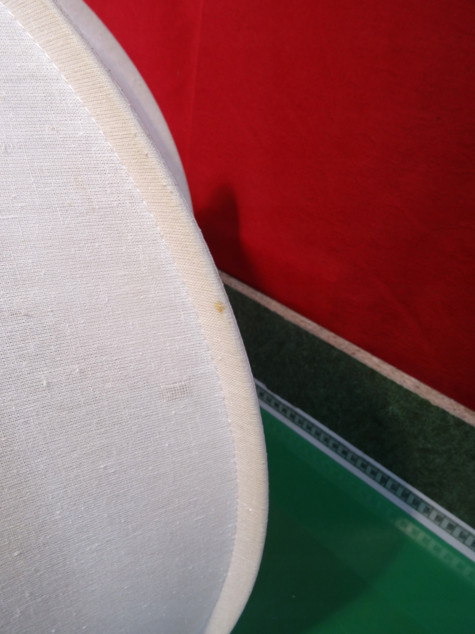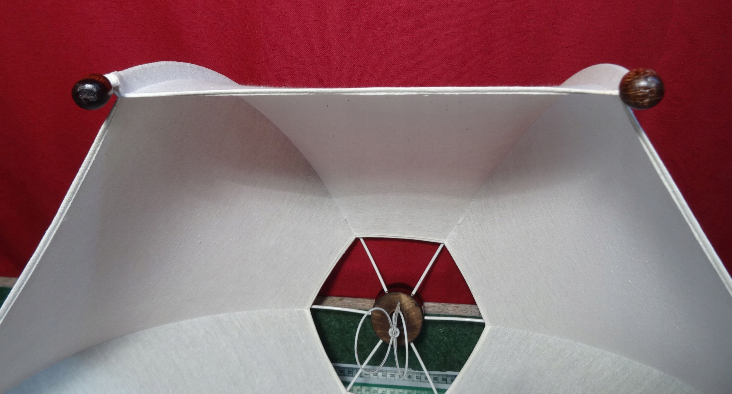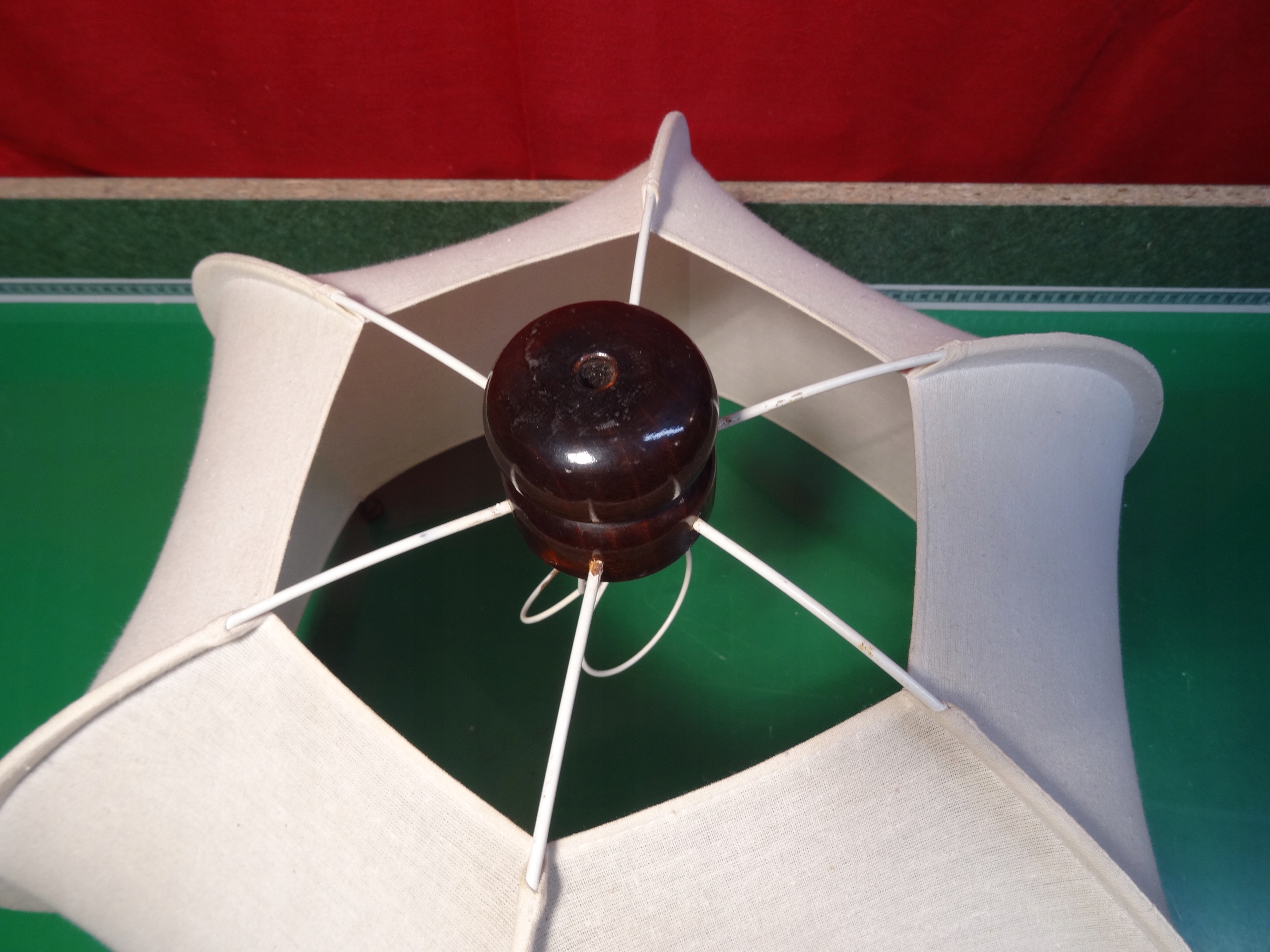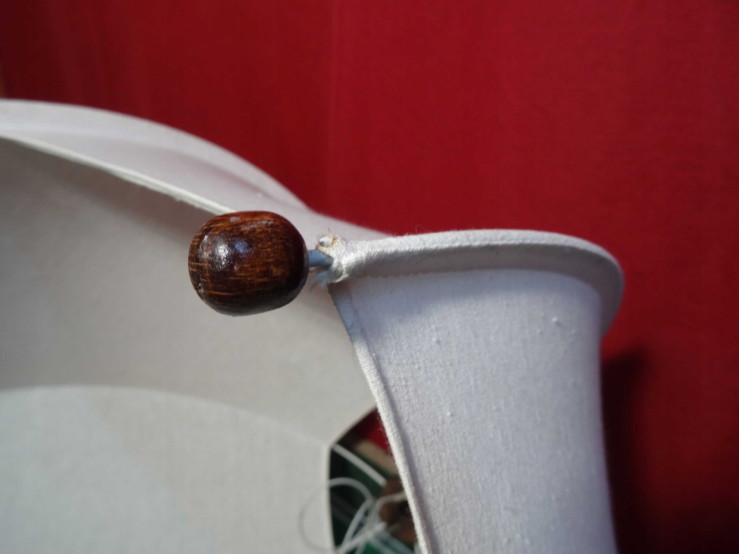 Большой материальный абажур для стоячей лампы. Металлическая рама абажура, середина и конец проводов из лаки из лака.