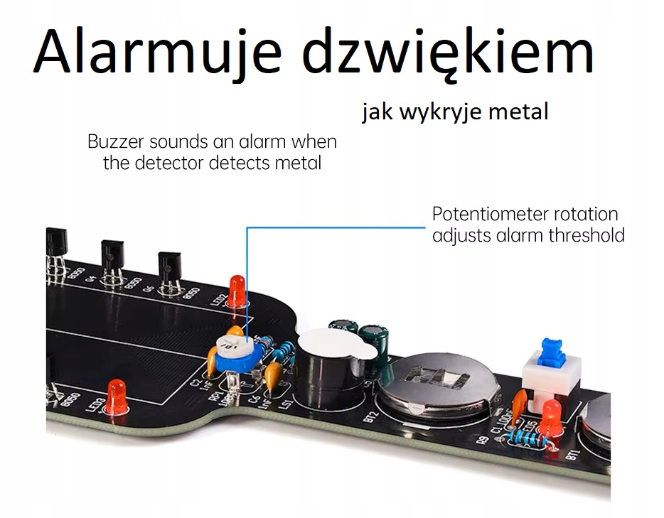 Когда детектор приближается к металлу, будильник включит