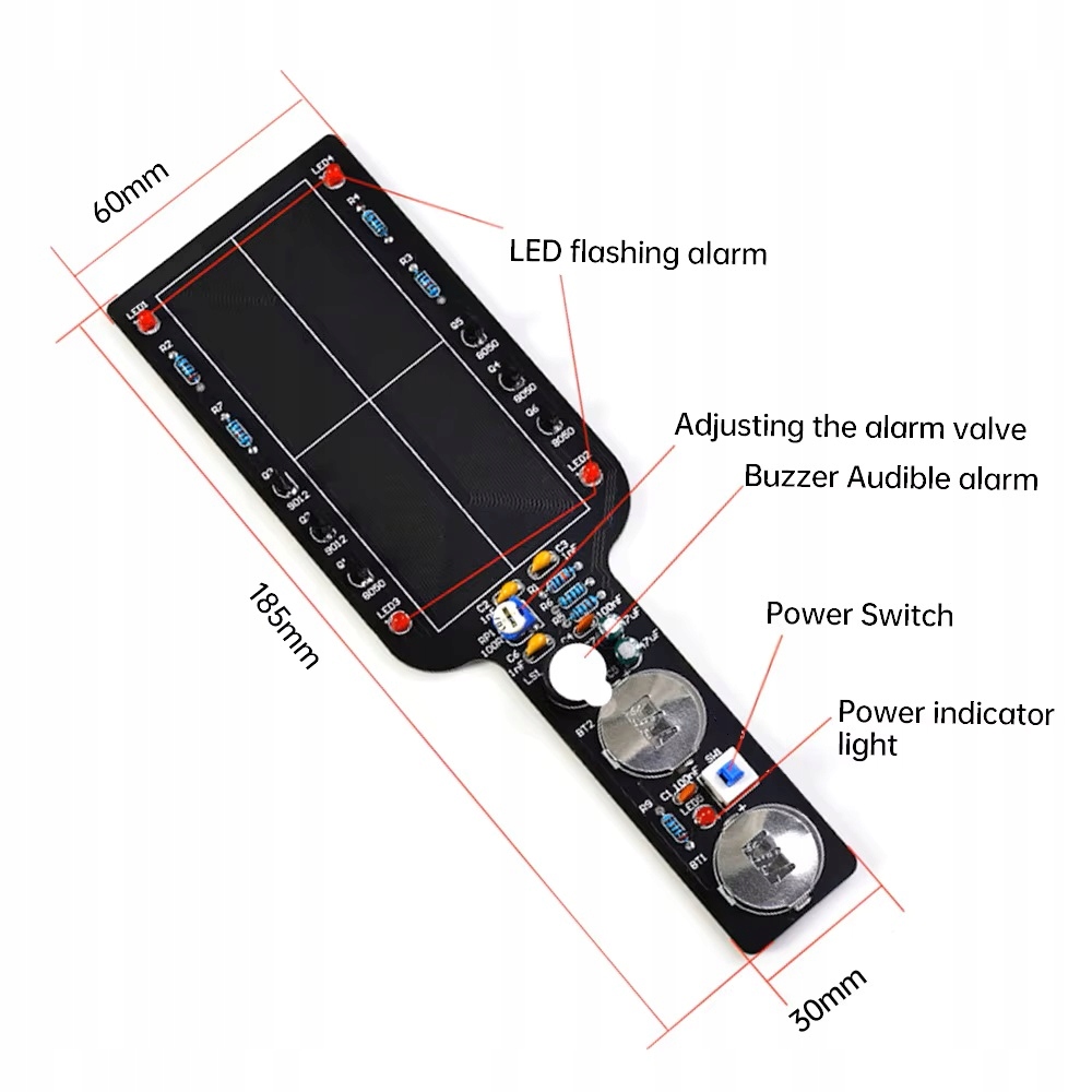 Максимальный диапазон обнаружения: 3-5 см, чем больше поверхности металла, тем больше расстояние обнаружения и чем меньше металлической поверхности, тем ниже расстояние обнаружения.