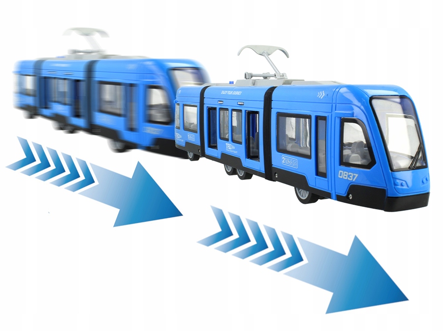 Большой шарнирно-сочлененный городской трамвай с фрикционным приводом, со световыми и звуковыми эффектами.