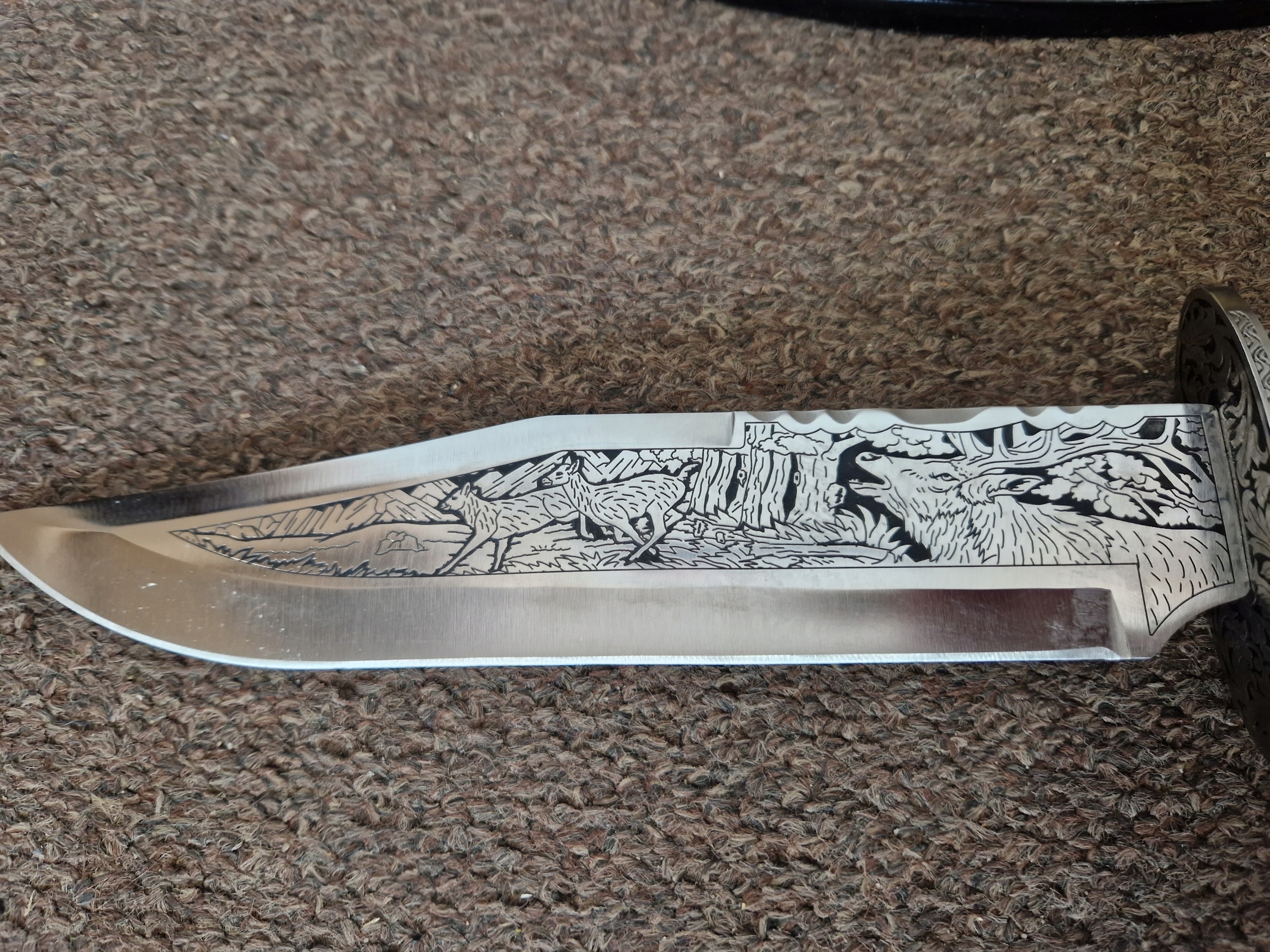 Гравировка на клинке: двусторонняя - растительные и животные мотивы - олень