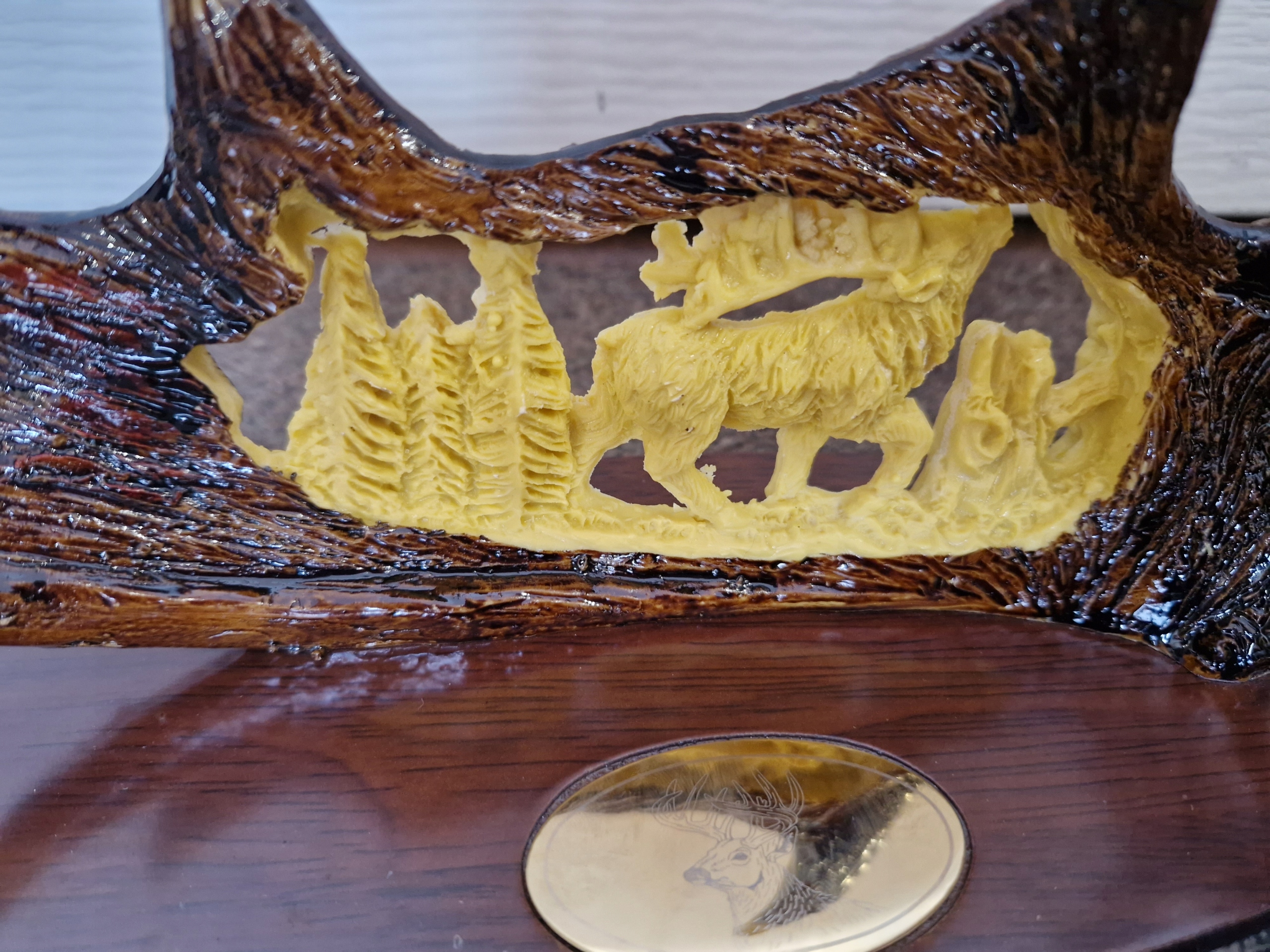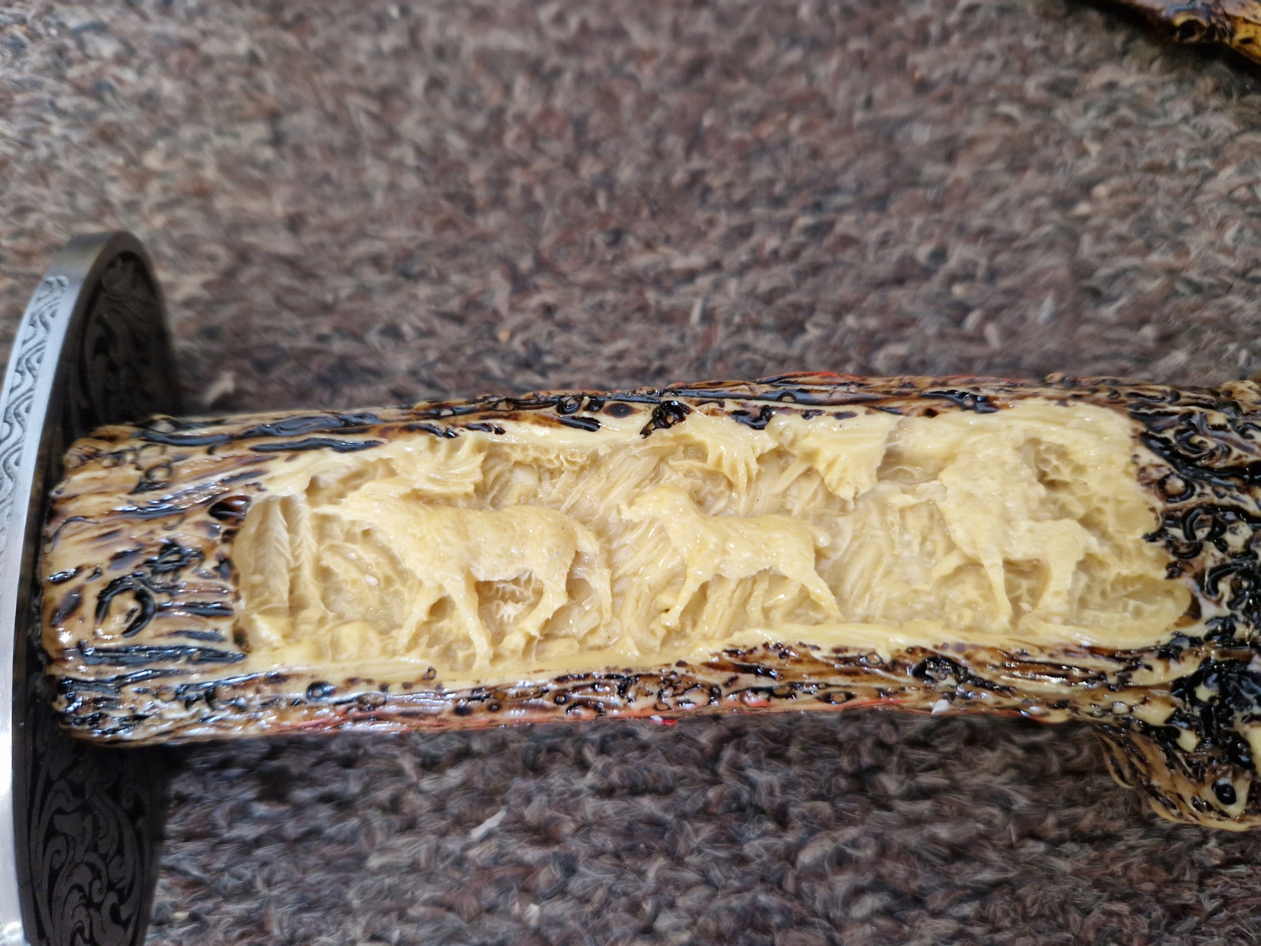 РУЧКА ИМИТАЦИЯ АНТЕРЛА, С ГРАВИРОВКОЙ (3 оленя с одной стороны, охотничья собака, преследующая оленя, с другой)
