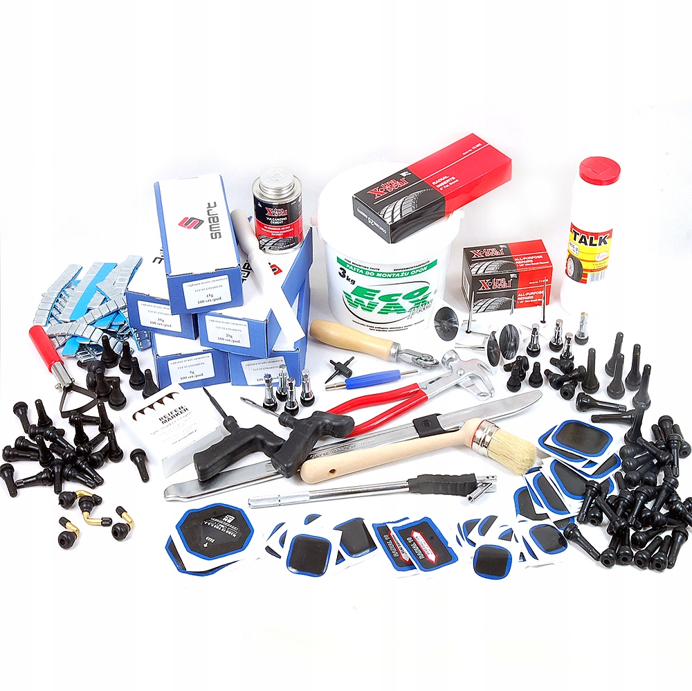 Стартовый набор для людей, занимающихся ремонтом шин, включая все необходимое для ремонта шины/камеры и балансировки колеса.