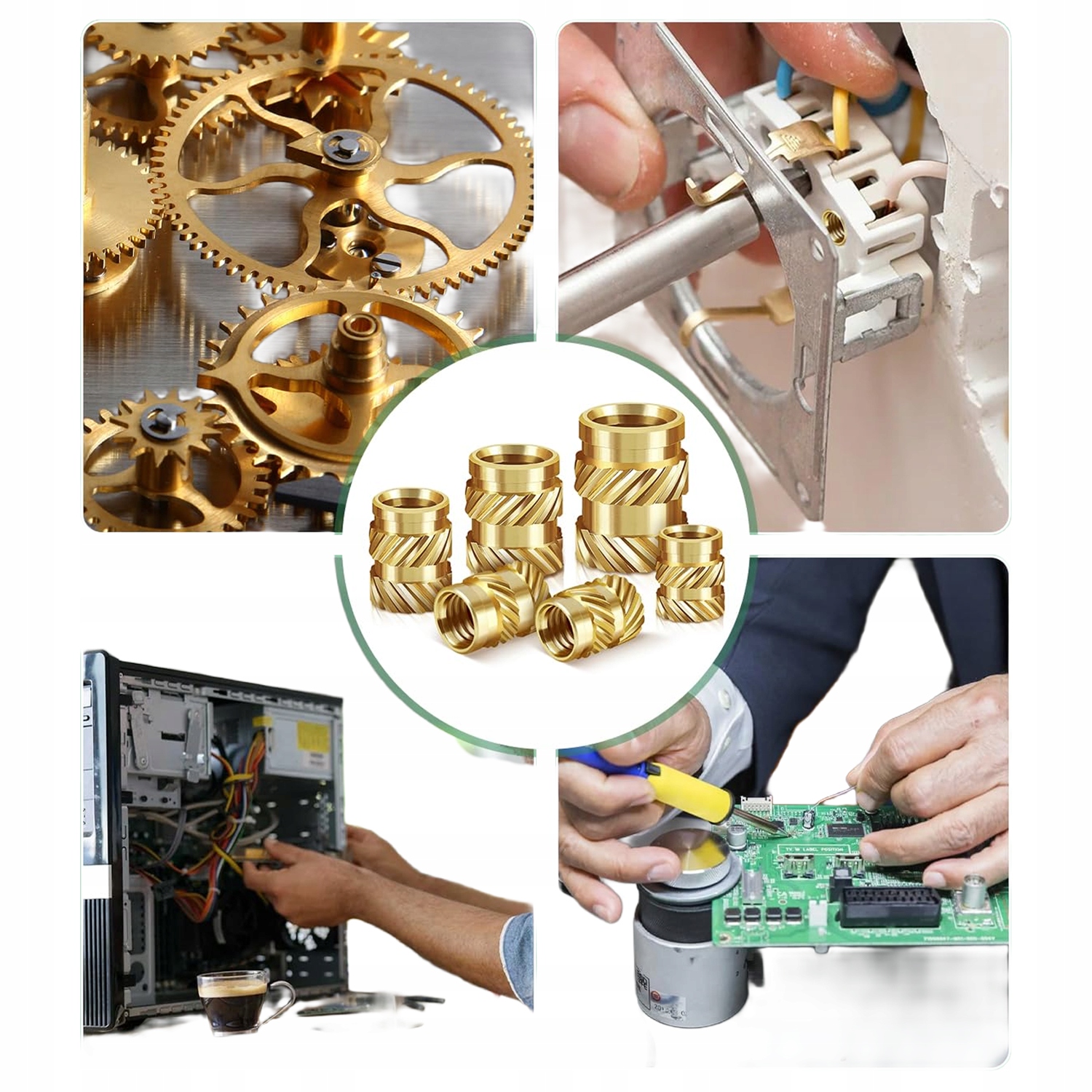 Профессиональный набор высококачественных латунных резьбовых вставок для пластика - идеально подходит для 3D-принтеров, электроники, моделей, DIY-проектов и ремонта пластиковых элементов. Благодаря точному исполнению, рифленой поверхности и высокой теплопроводности вставки обеспечивают прочное, стабильное и долговечное соединение.