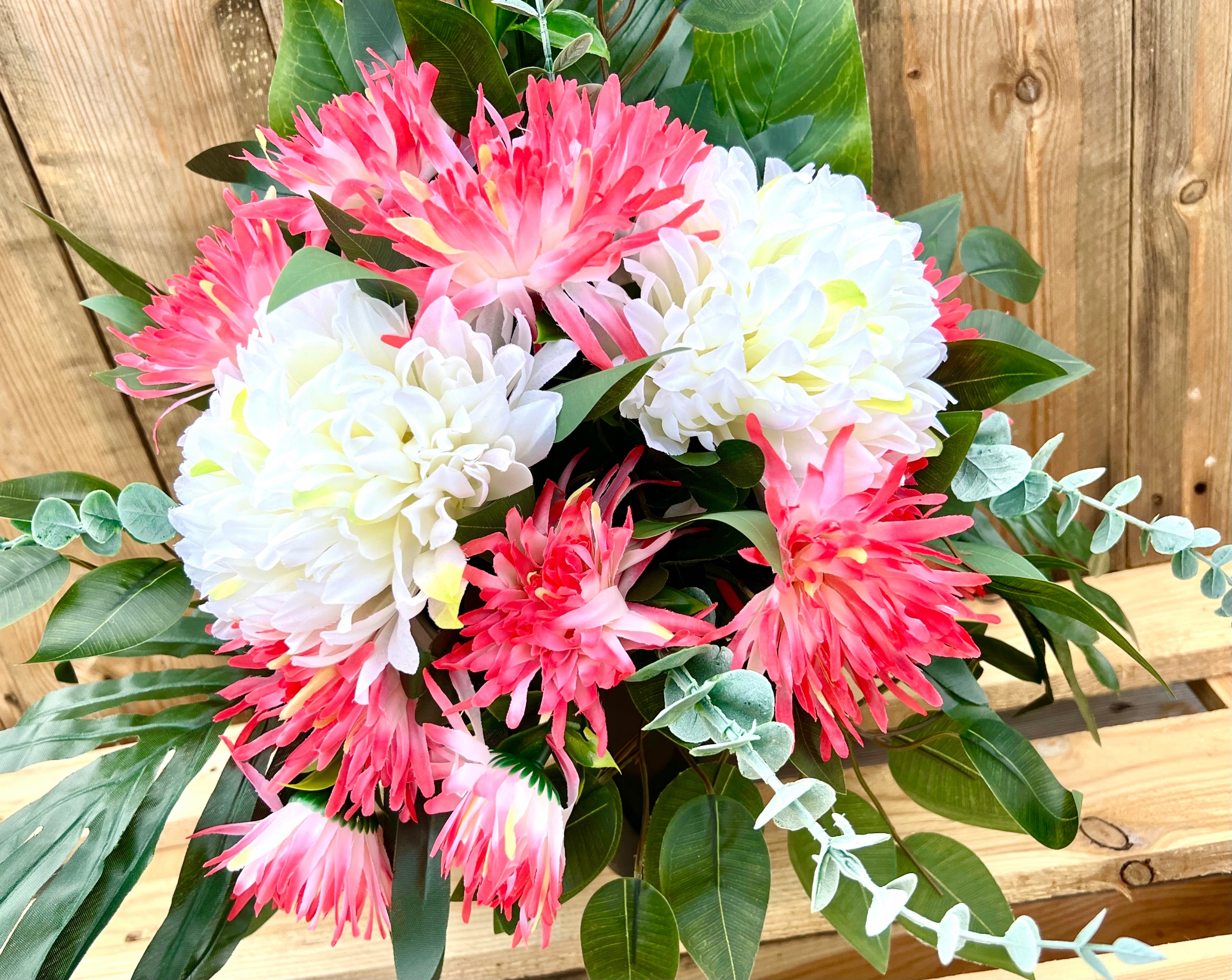 Все цветы искусственные. Все наши композиции изготавливаются вручную в нашей мастерской с особой тщательностью.