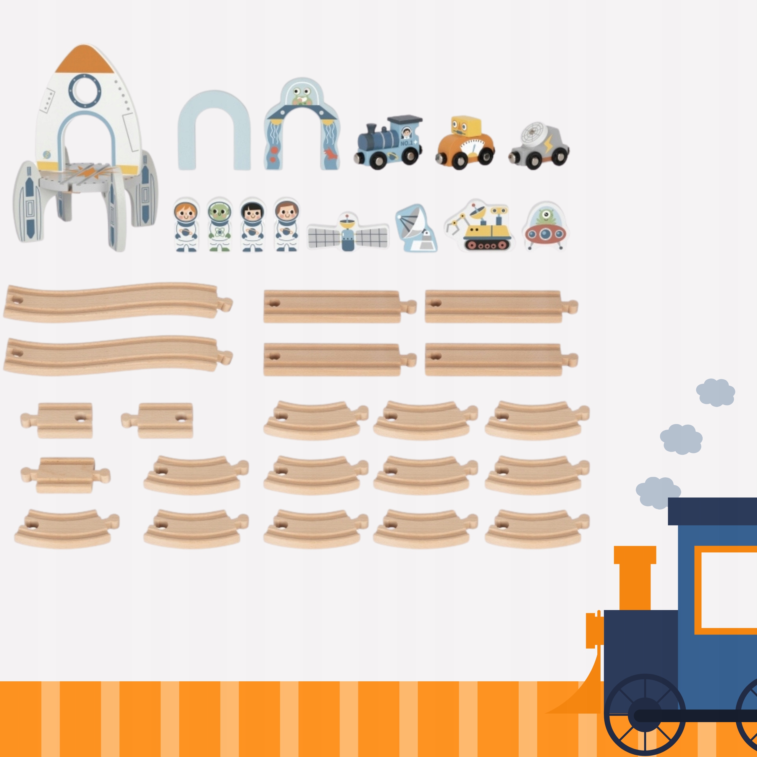 Многоуровневый деревянный поезд, вдохновленный миром космоса — обучение и развлечение в одном!