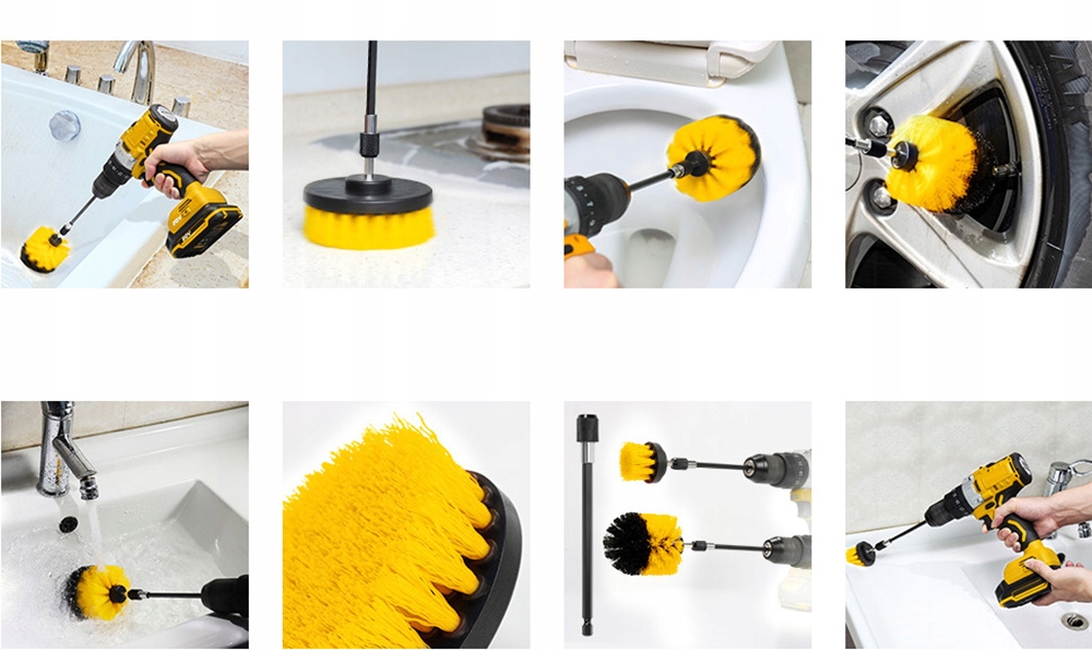 Щетка для сверления из трех частей средней жесткости: изготовлена из чрезвычайно прочного высококачественного полипропилена, каждая щетина достаточно жесткая. Подходит для чистки автомобильных колес и позволяет быстрее выполнять сложные работы по очистке, не царапая краску и колеса. Также идеально подходит для ванных комнат, душевых кабин, ванн, туалетов, плитки, затирки, полов, ковров, кухонь, раковин, углов, грилей, автомобильной обивки и т. д. Один комплект отвечает всем вашим потребностям в уборке.