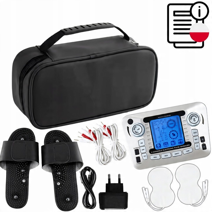 AS-979 TENS EMS ЭЛЕКТРОСТИМУЛЯРНЫЙ - ДВУХКАНАЛЬНЫЙ, 3 ТИПА ЭЛЕКТРОДОВ, КЛЭПЫ + БЛОК ПИТАНИЯ