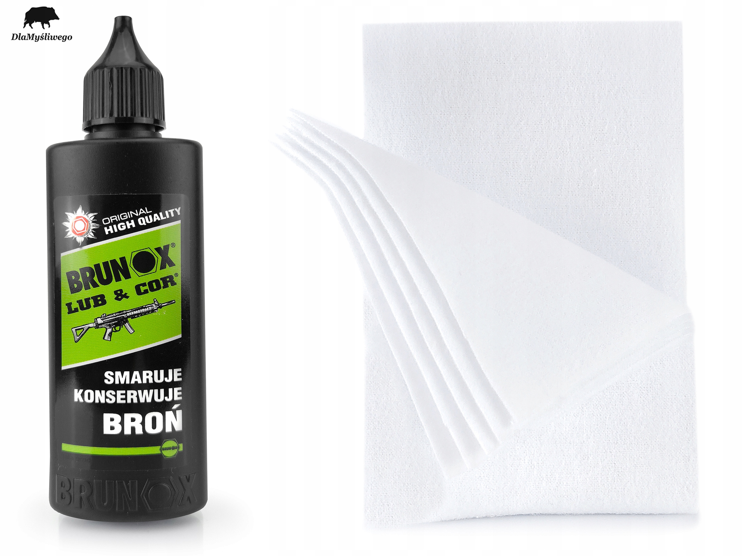 brunox или & cor используется для поддержания металлического оружия. Создает равномерный, необычный слой, предотвращает коррозию во время хранения. Он имеет хорошие проникающие свойства , нейтральный для дерева, резины и пластмасс. Flannel поглощает жидкости отлично и безопасна для очищенных поверхностей .