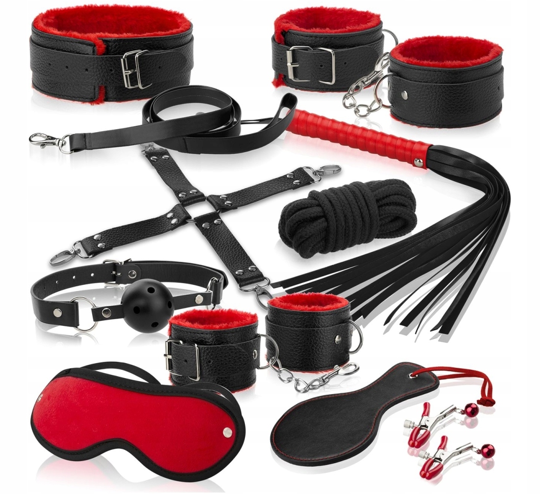 БОЛЬШОЙ БДСМ-БОНДАЖНЫЙ НАБОР ДЛЯ НАКАЗАНИЯ, 11 ПРЕДМЕТОВ