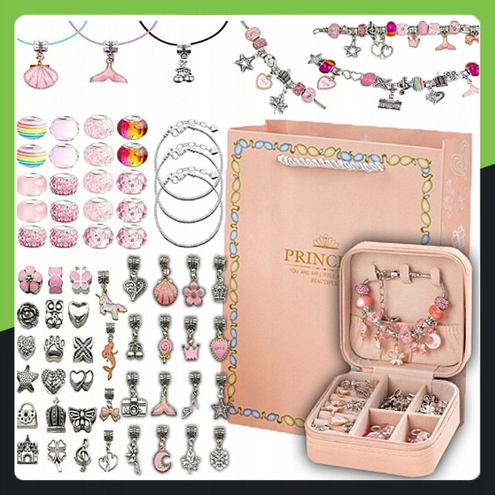 В комплект также входит элегантная коробочка для хранения и подарочный пакет, благодаря чему весь комплект выглядит роскошным подарком. Широкий выбор брелоков и подвесок позволяет ребенку развивать воображение, творческие способности и навыки ручного труда, и в то же время обеспечивает часы творческих, увлекательных игр.