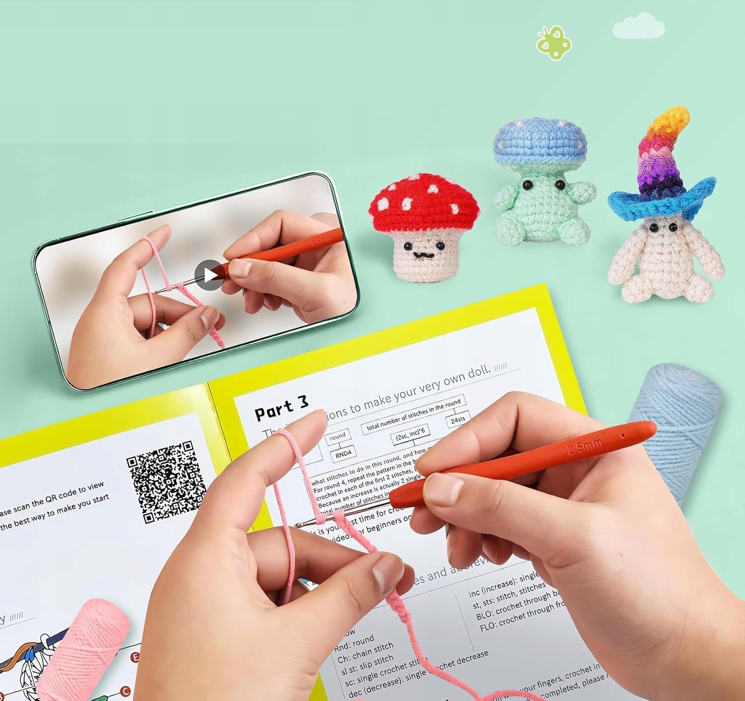 ✅ Полный набор для самостоятельного изготовления - красочная пряжа, крючок, иглы, аксессуары и инструкции
