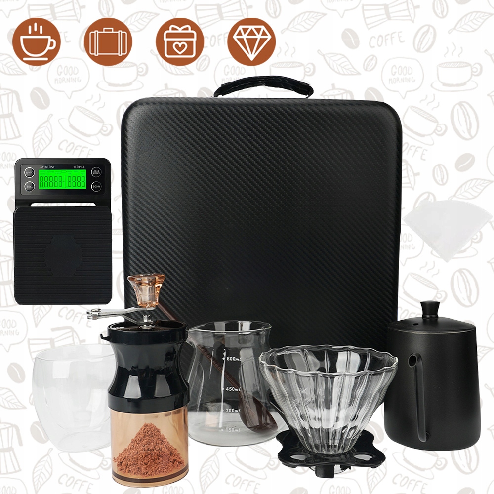 ☕ Набор содержит кофейную чашку 250 мл, стеклянную кувшин с объемом 600 мл, кувшин с разбитой рукой 600 мл, шлифовальная мешка 150 мл, 40 листов фильтровальной бумаги, фильтровая чашка, электронную масштаб, ложк и ящик для хранения. Ma Wszystko, Czego Potrzebujesz. Подходит для дома, для пикника, кемпинга и т. Д.