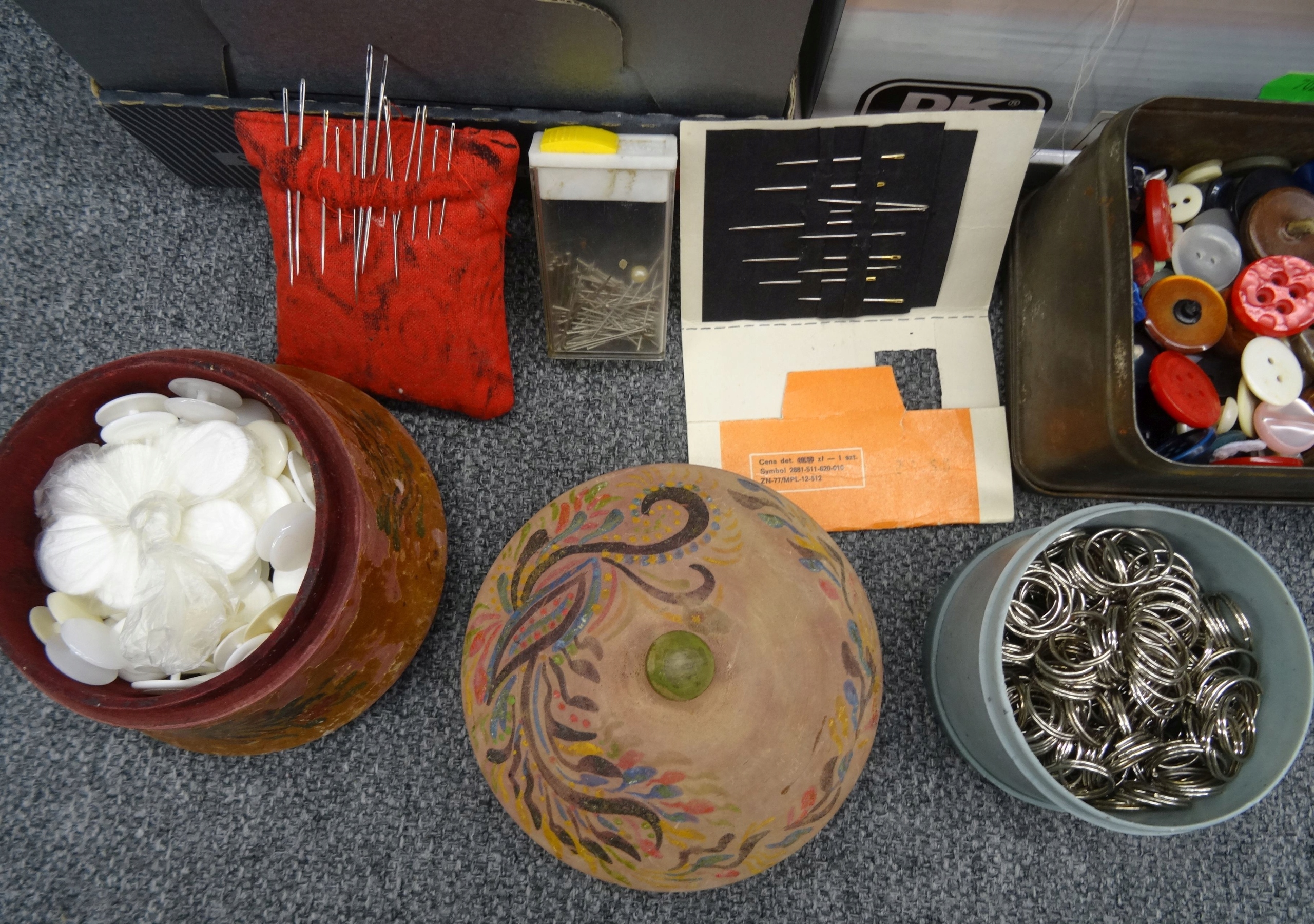 Большой набор специальных аксессуаров: ленты, нити, кнопки, иглы, нажатия, пряжки, колеса, струны, эластики, булавки, пряжа и т. Д. Самые большие ботинки, пластиковые, металлические и деревянные коробки. Несколько сотен элементов.