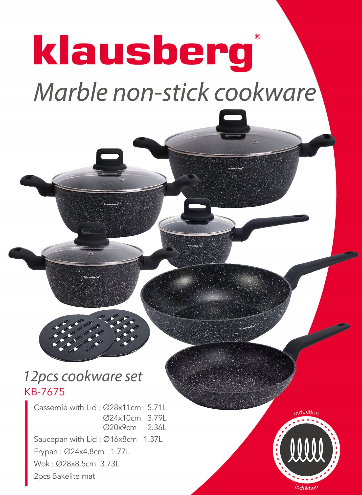 ВЕЛИКИЙ Набір мармурових каструль і сковорідок Набір 12 предметів Klausberg
