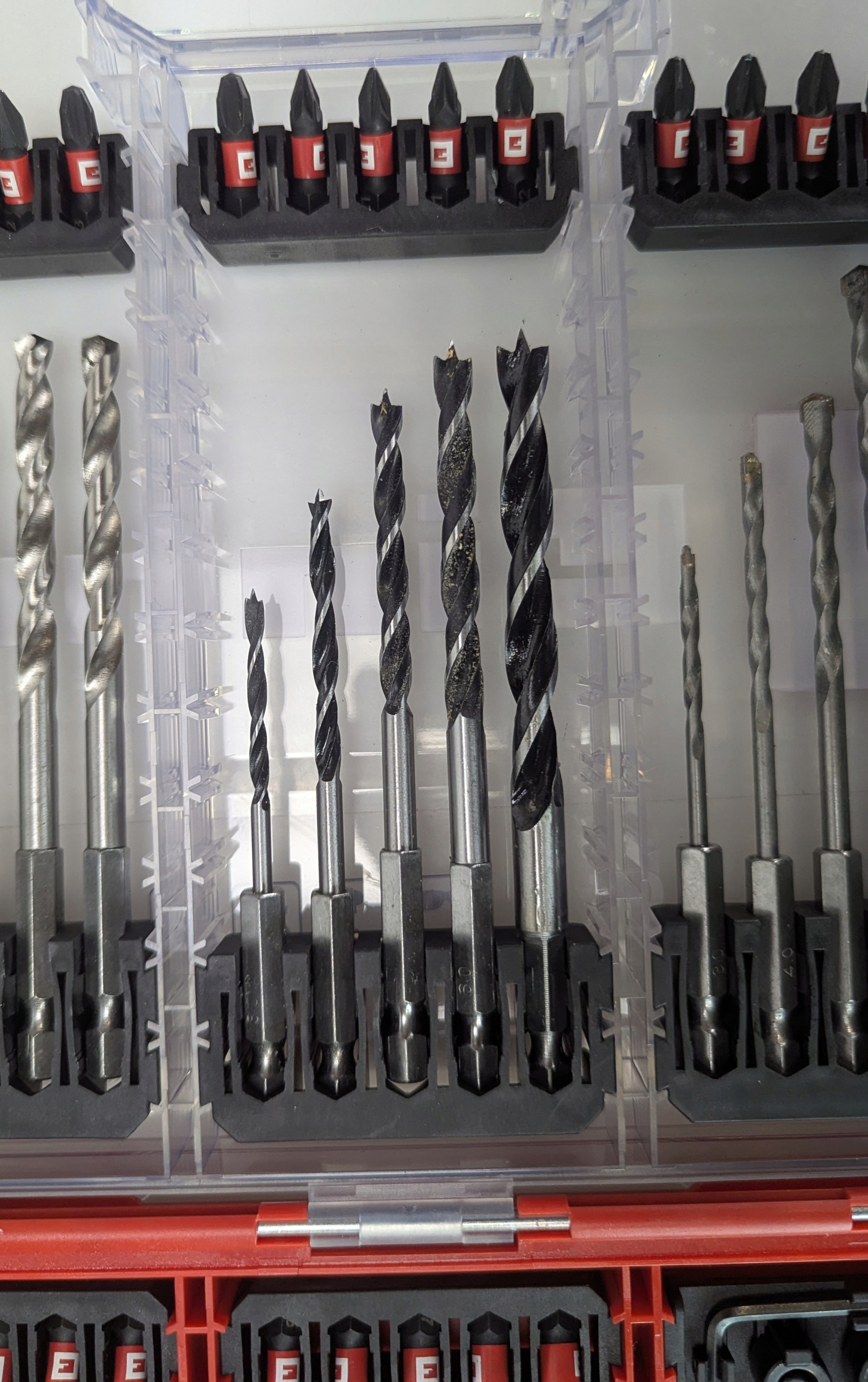 - 49x impact bits in 25 mm (PH0 / 2x PH1 / 4x PH2 / 2x PH3 / 3x PZ1 / 4X PZ2 / 2x PZ3 / 2x H2 / H2.5 / H3 / H4 / H5 / H6 / 3x T10 / 3x T15 / 3x T20 / 4x T25 / 2x T27 / 2x T30 R0 / R1 / R2 / R3)