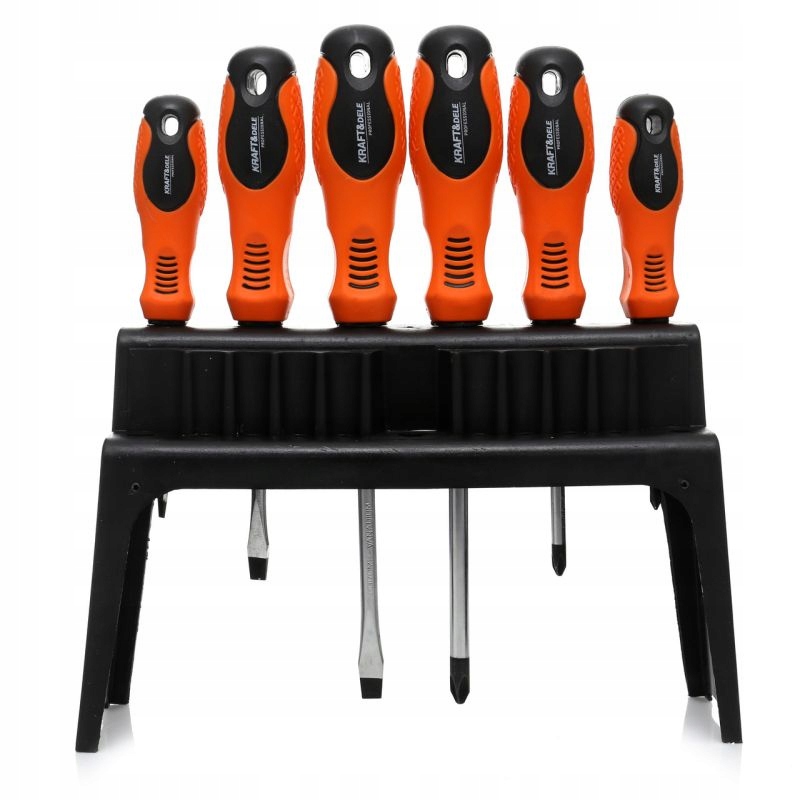 Набор отверток и бит KD10900 от Kraft&Dele отлично подойдет для любого гаража или мастерской. Входящая в комплект подставка облегчает хранение отверток.
