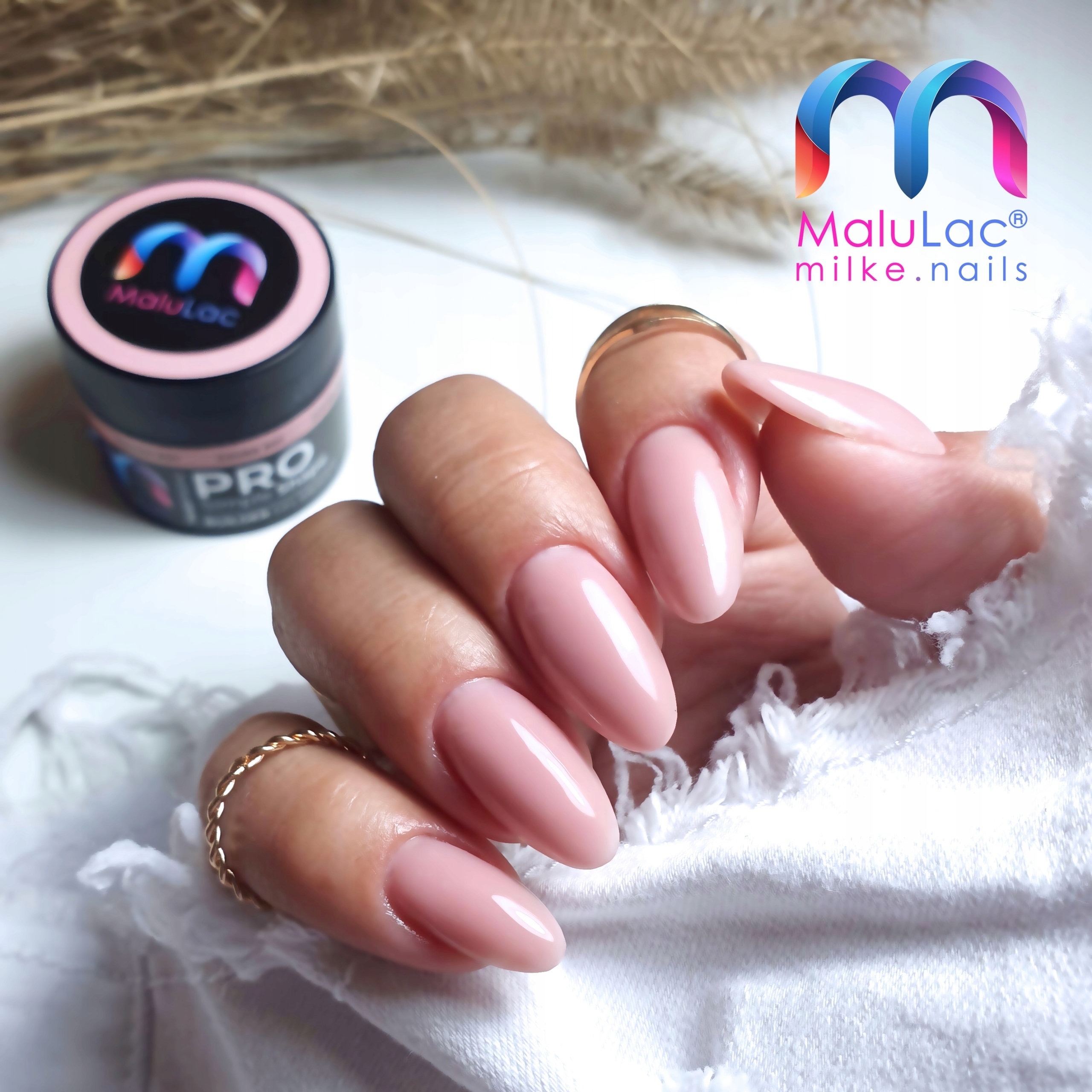 MaluLac — многофункциональный самовыравнивающийся строительный гель с высокой адгезией. Он легко наносится и после затвердевания в лампе устойчив к повреждениям.