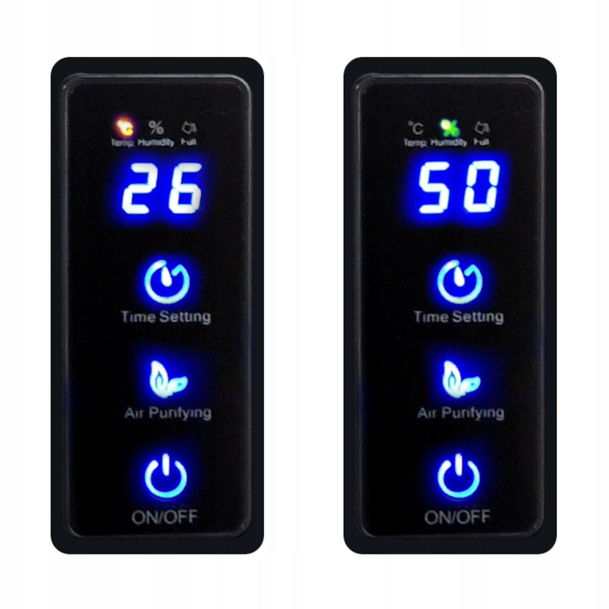Осушитель воздуха имеет понятную и удобную в использовании сенсорную панель управления с синей светодиодной подсветкой. Благодаря встроенным термометру и гигрометру во время работы он показывает текущую температуру попеременно с текущей влажностью воздуха окружающей среды, в которой он находится.