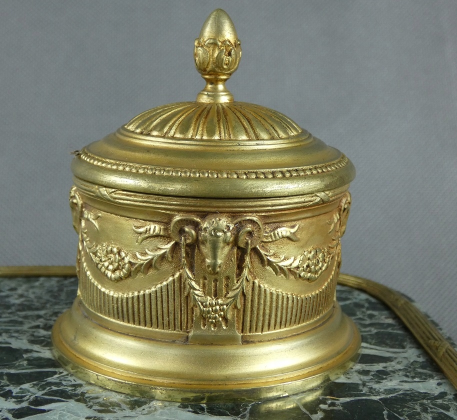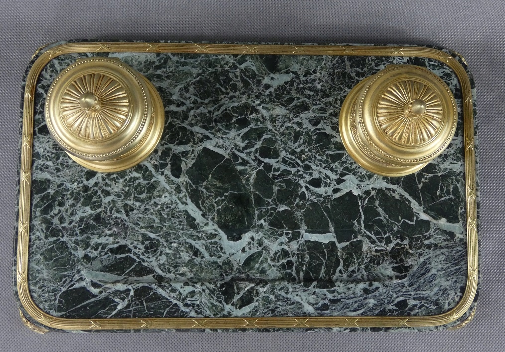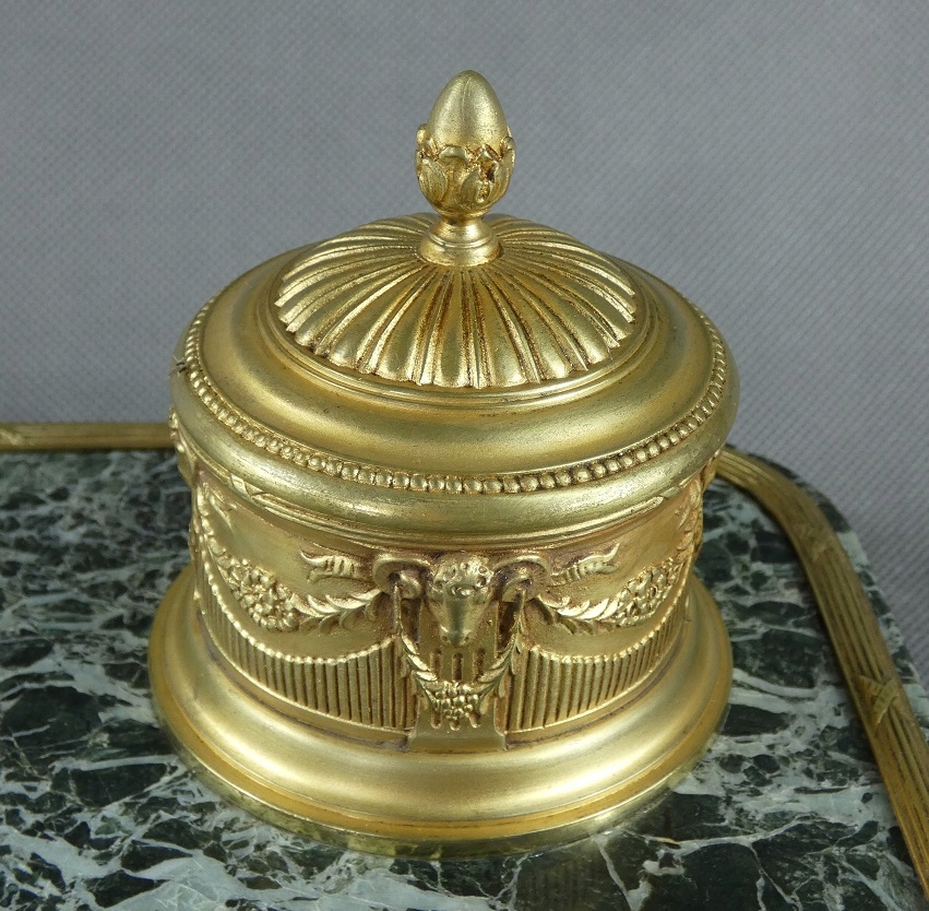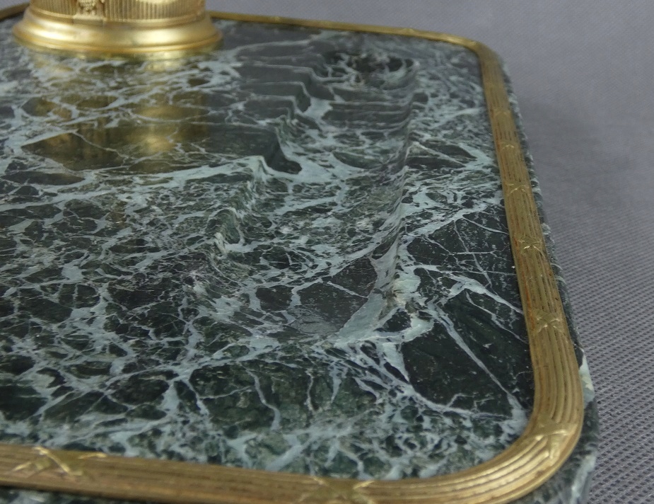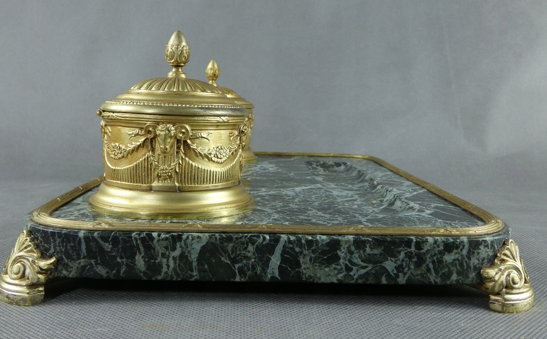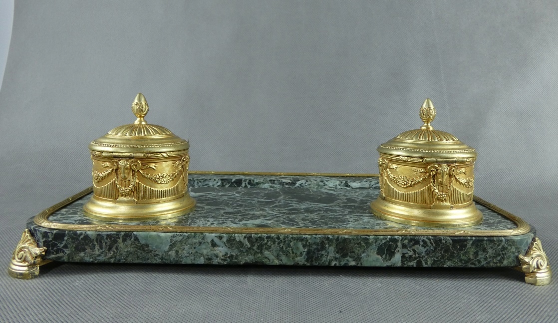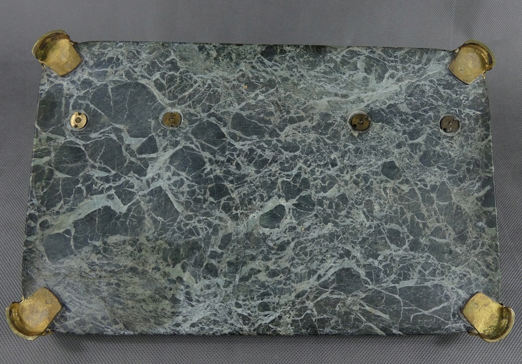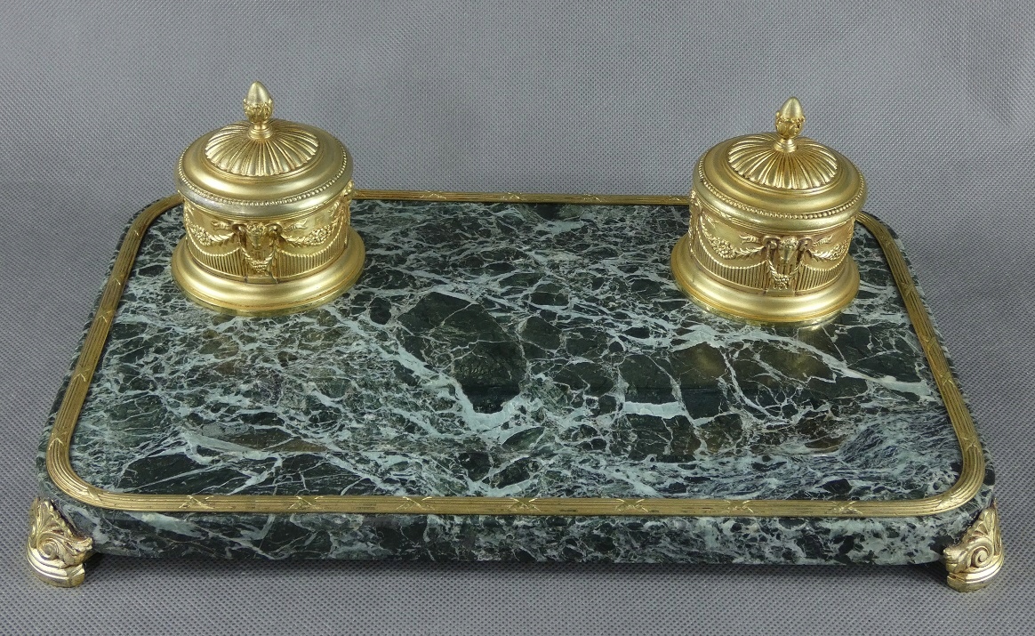 Изготовлен из зеленого мрамора. На столе в офисе офиса или