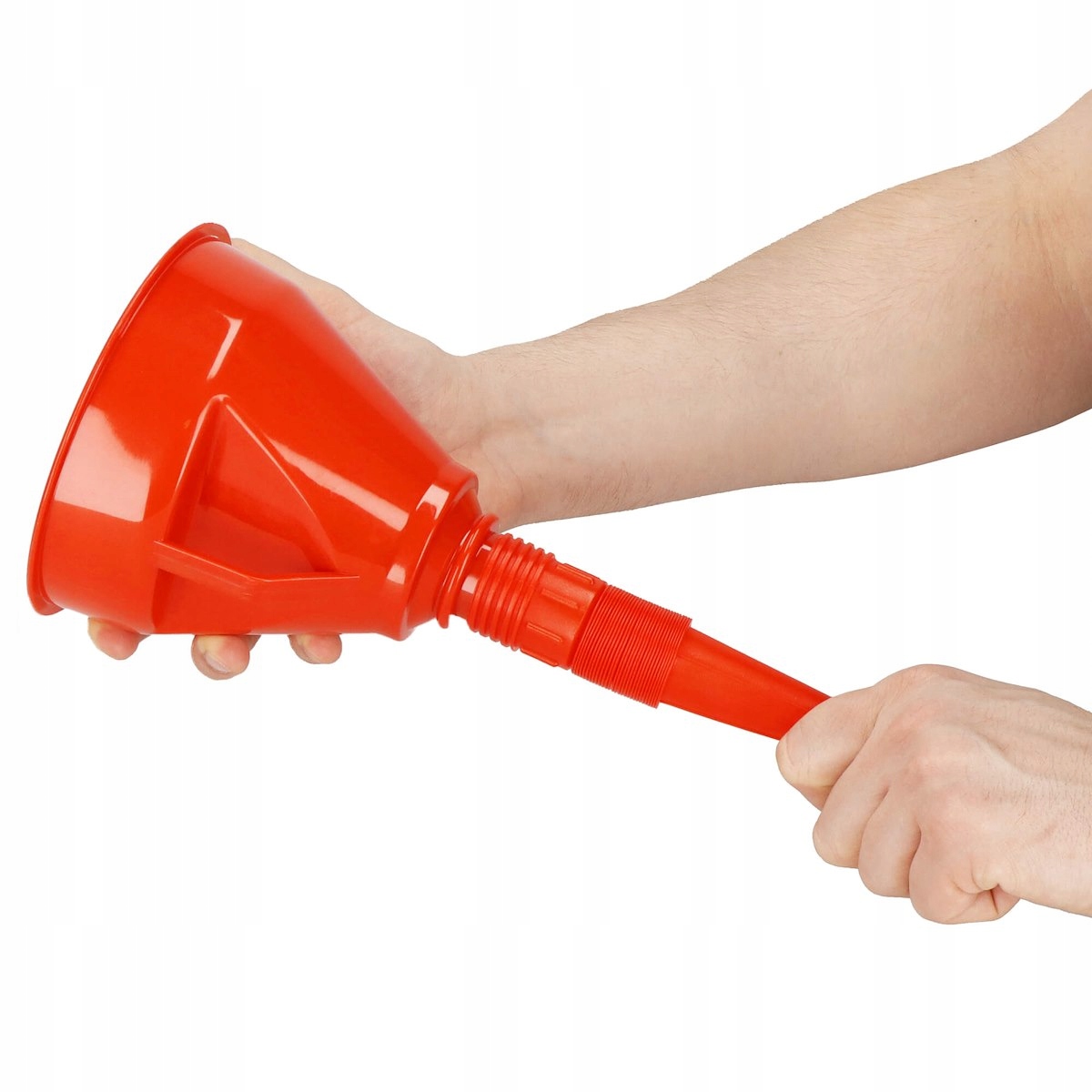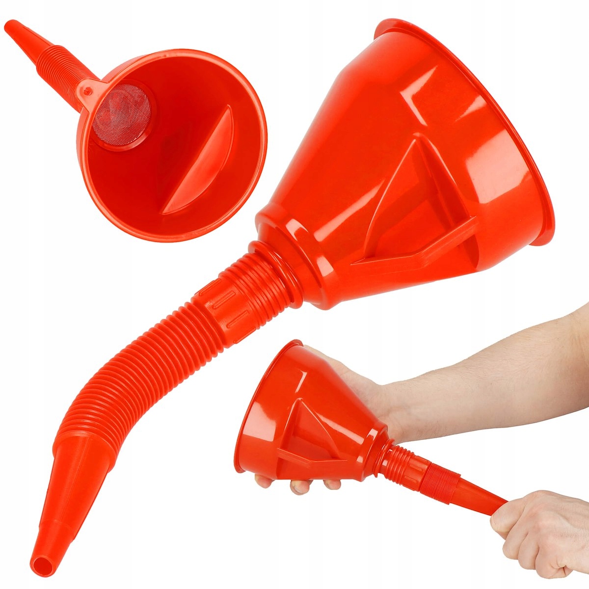 Воронка с гибкой насадкой от бренда Springos® устойчива вредного воздействия химических веществ. Он оснащен сетчатым фильтром, который удаляет из наливаемой жидкости мелкие примеси, такие как песок или опилки.