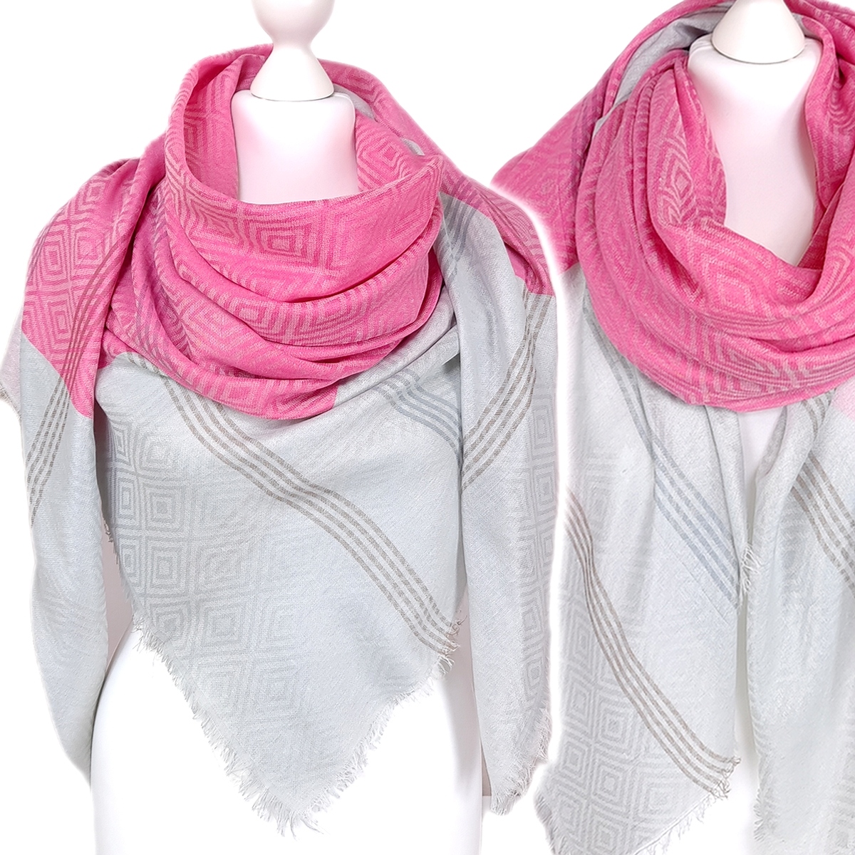 - большой, красивый шарф в пастельных тонах и с узором классический узор