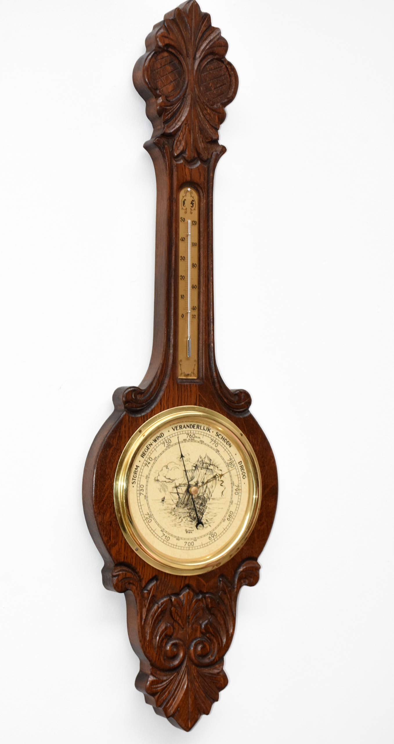 БОЛЬШОЙ ПОДВЕСНОЙ ДУБ БАРОМЕТР, ТЕРМОМЕТР ФРАНЦИЯ высота:94см
