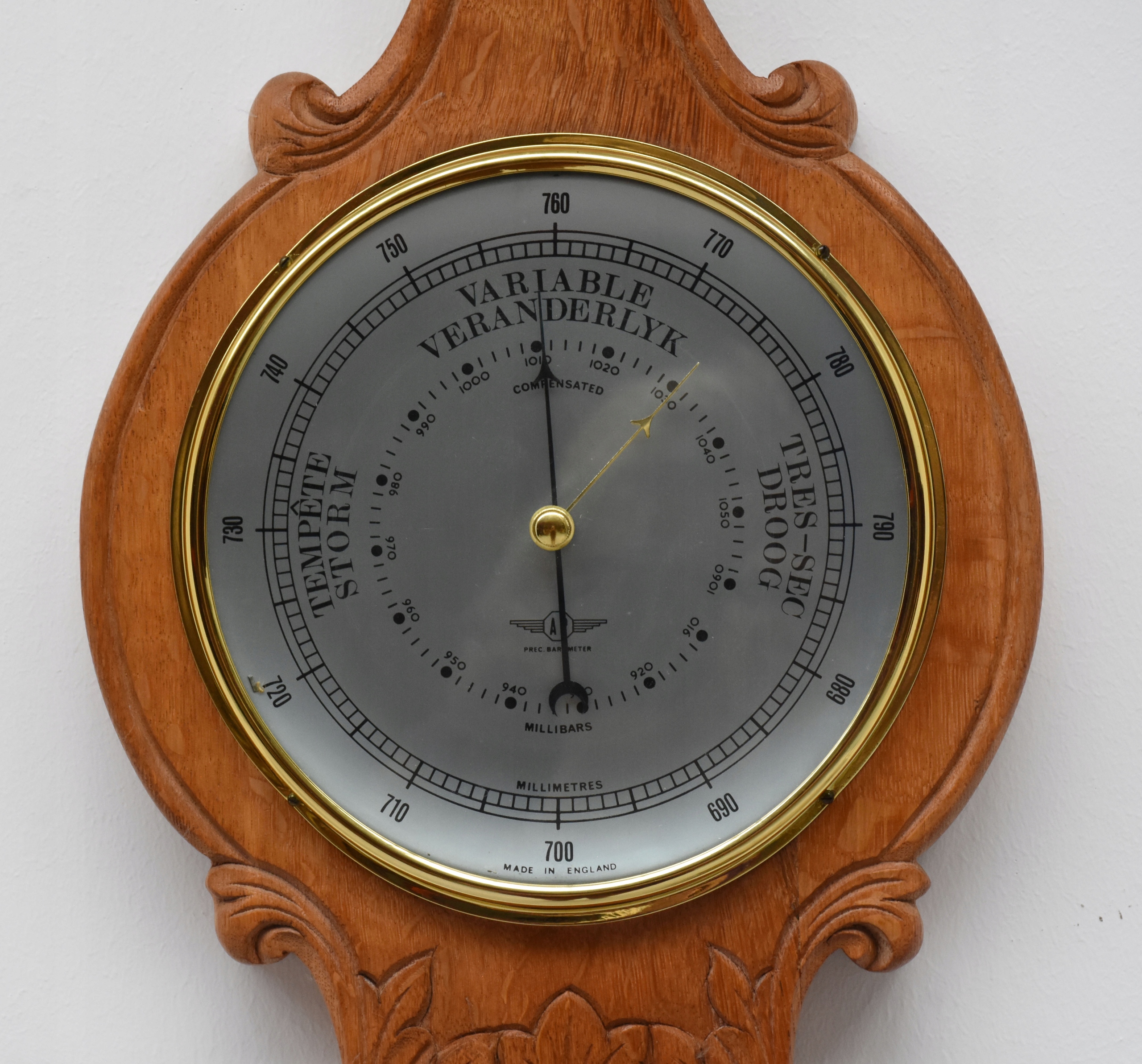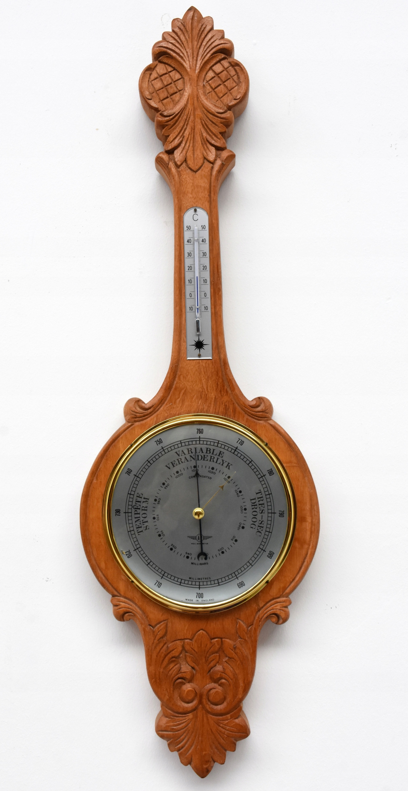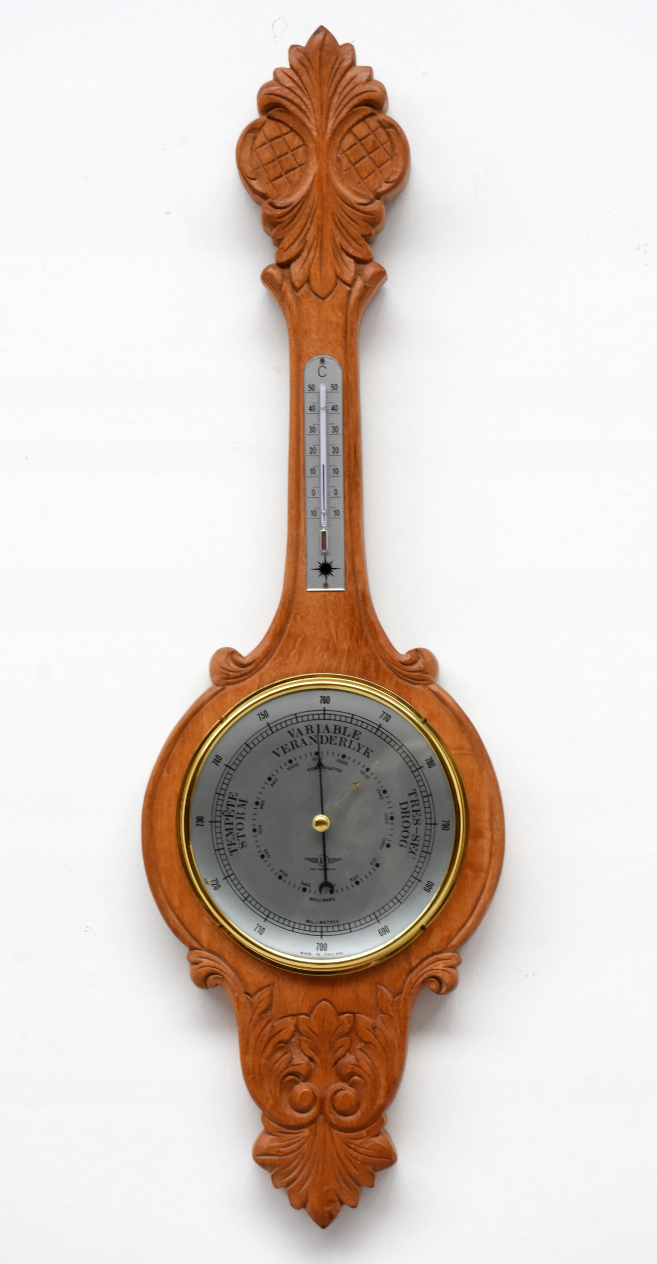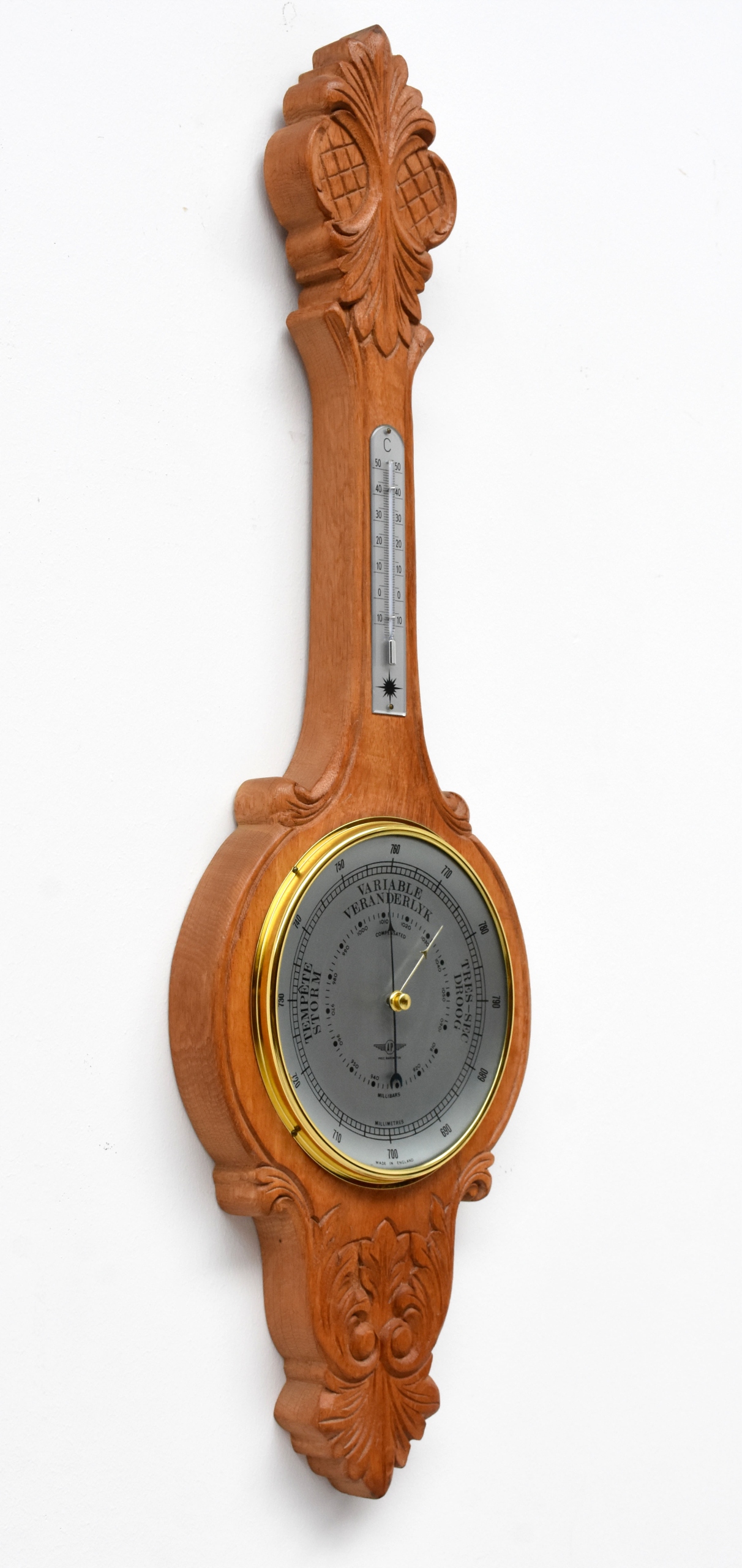 ВЕЛИКИЙ ПІДВІСНИЙ ДУБОВИЙ БАРОМЕТР, ТЕРМОМЕТР ФРАНЦІЯ
