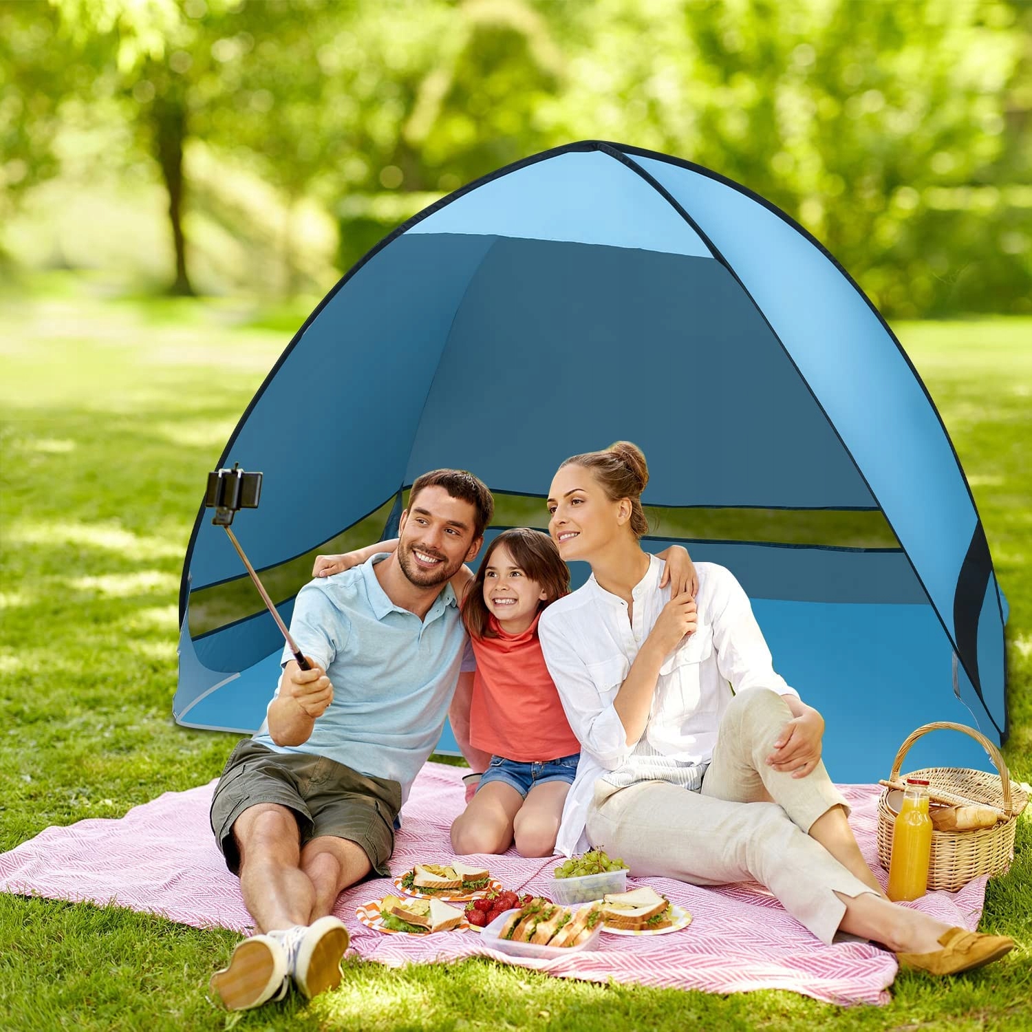 Открытая пляжная палатка идеально подходит для кемпинга, отдыха и семейных поездок до 4 человек.