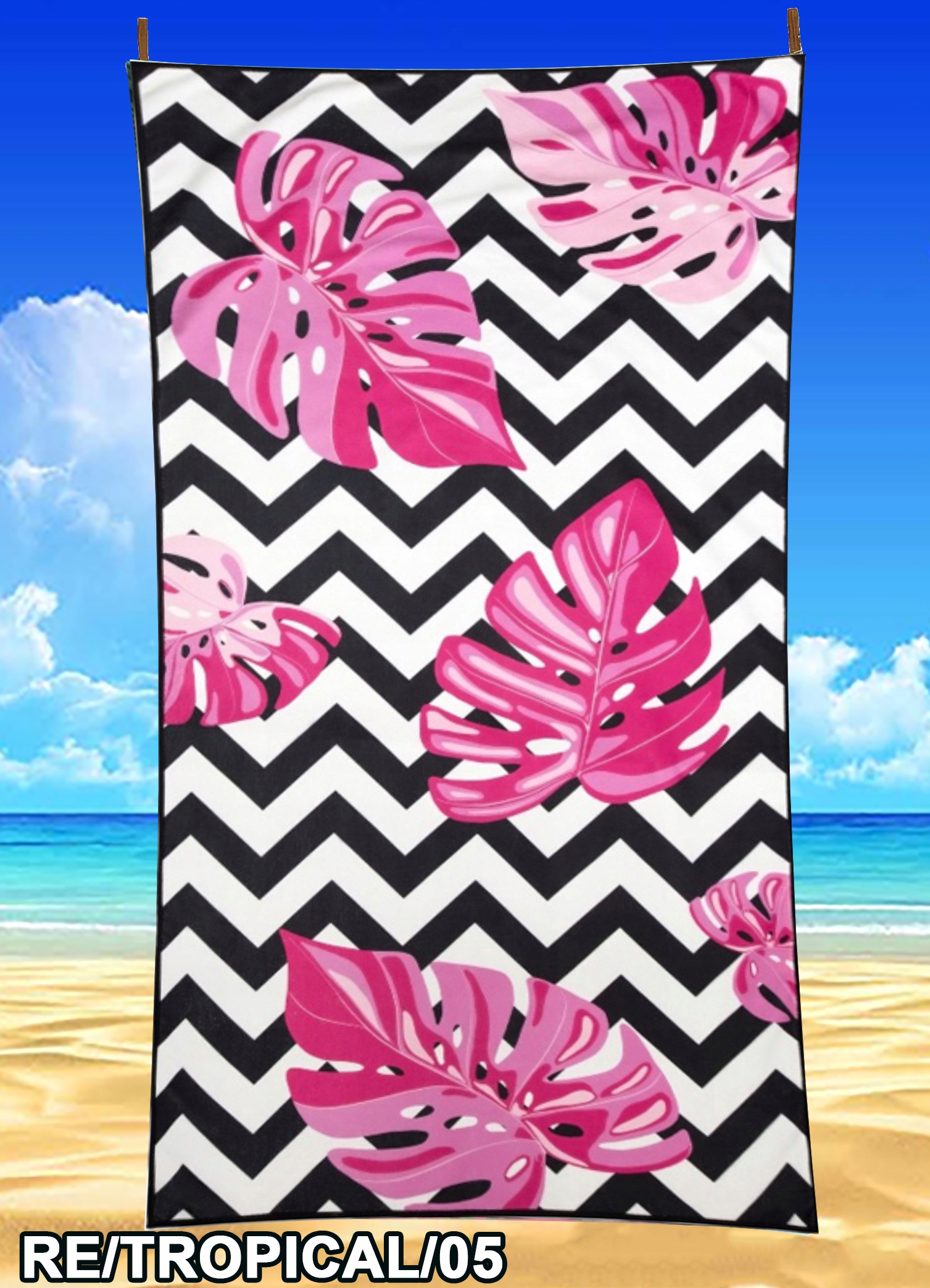 ВЕЛИКИЙ ПЛЯЖНИЙ РУШНИК ДЛЯ ПЛАВАННЯ З МІКРОФІБРИ ШВИДКОСИХНУЧИЙ 80x160 ТРОПІК
