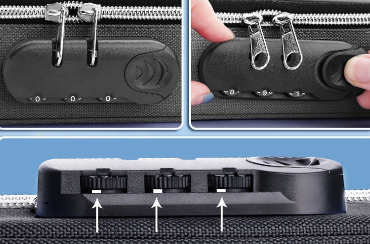 Пароль: Начальный пароль пенала - 000, сменить пароль - открыть замок, сменить его на выбранный пароль и после завершения отпустить.