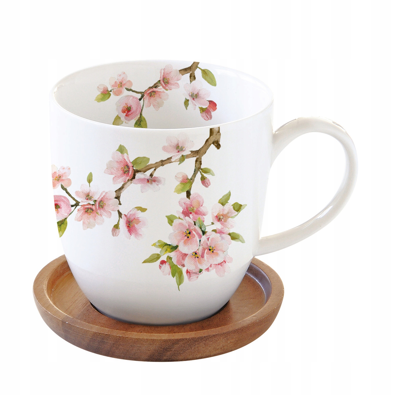 Великий порцеляновий кухоль 350 мл дерев'яне блюдце