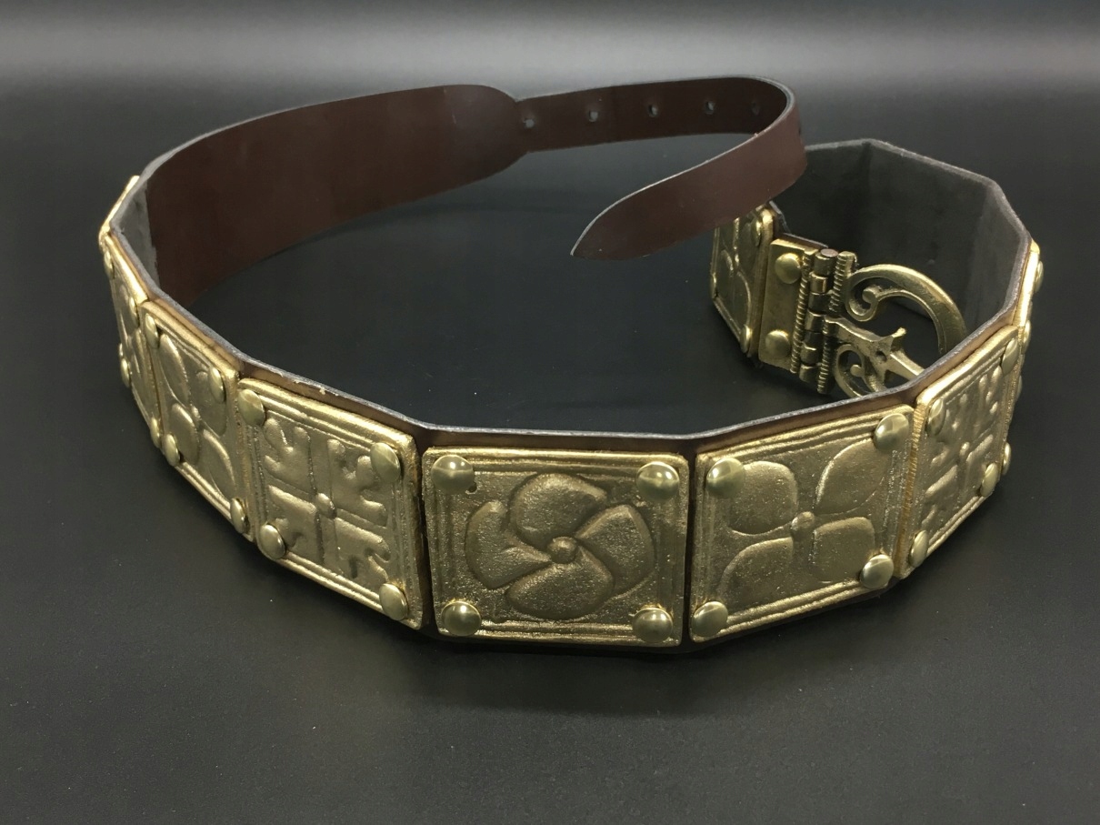 Стилизованная латунная пряжка, напоминающая декоративные узоры той эпохи
