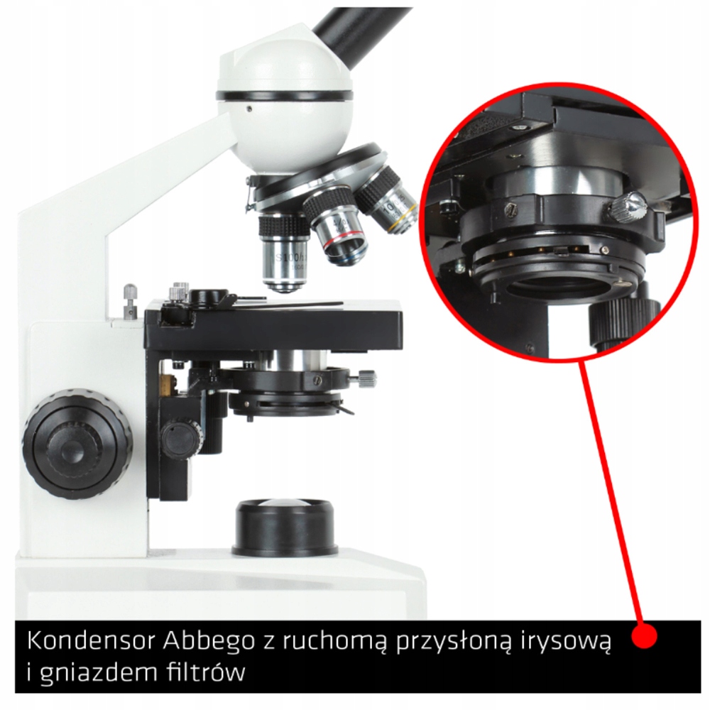 ✔️Конденсор Аббе: микроскоп оснащен конденсором Аббе с числовой апертурой 1,25 с ирисовой диафрагмой, прорезью для фильтра и регулировкой по высоте. Этот элемент значительно улучшает качество изображения за счет увеличения контрастности, равномерности освещения и глубины резкости.
