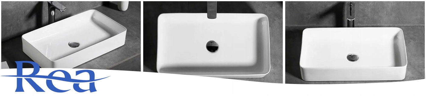 ВЕЛИКИЙ ПРЯМОКУТНИЙ НАСТІЛЬНИЙ УМИВАЛЬНИК REA DENIS WHITE ДЛЯ СТІЛЬНИЦІ