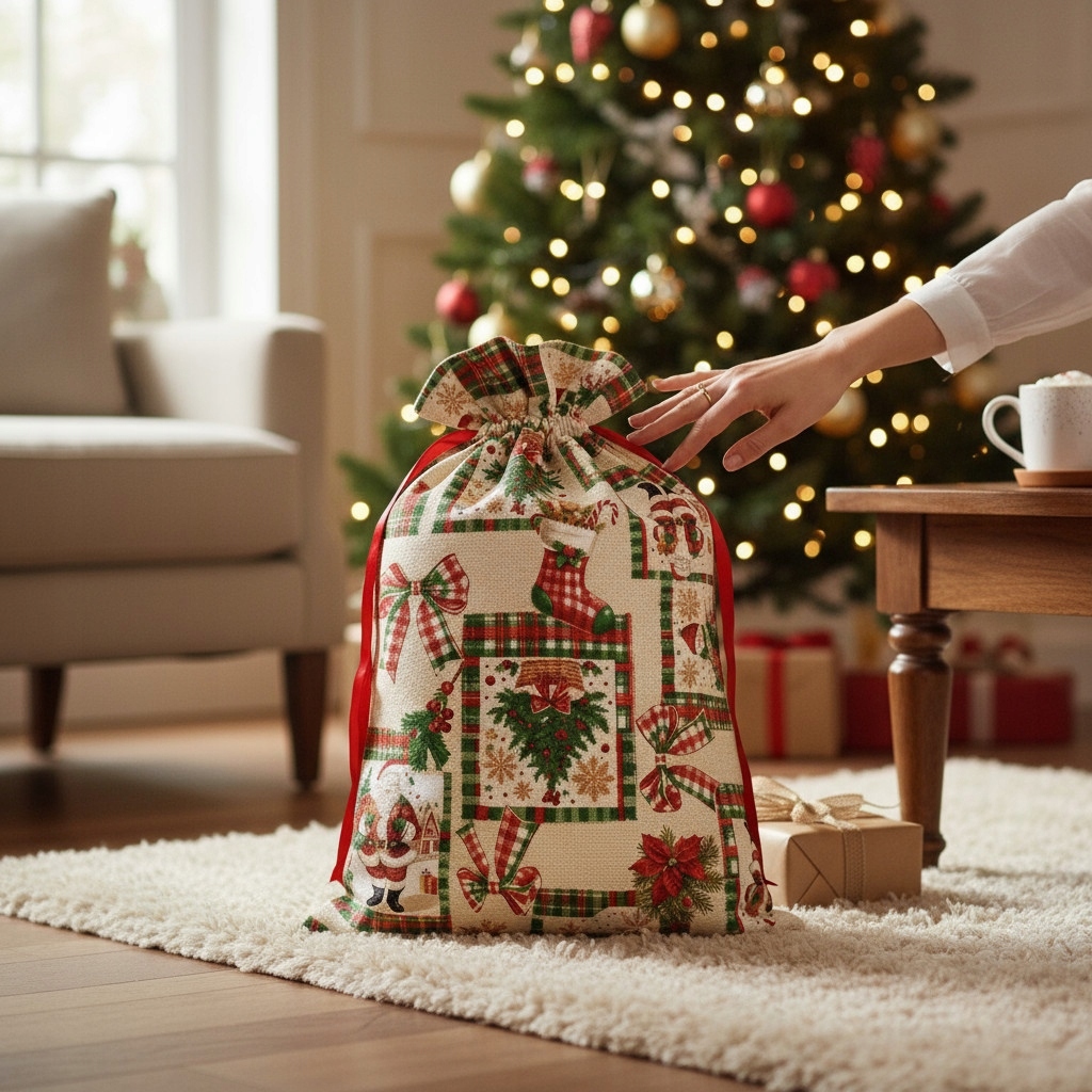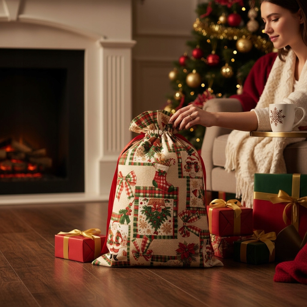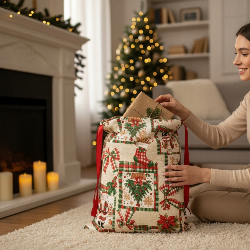 Мешки с подарками создают целостную и эстетичную композицию. Они помогают сохранять порядок — вместо беспорядочной упаковки все выглядит гармонично и празднично.