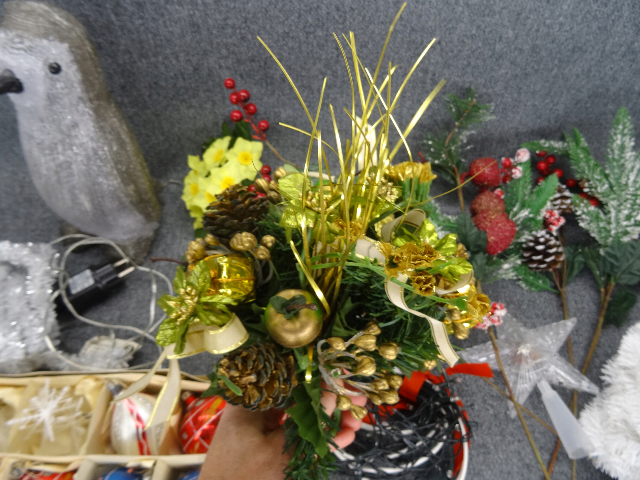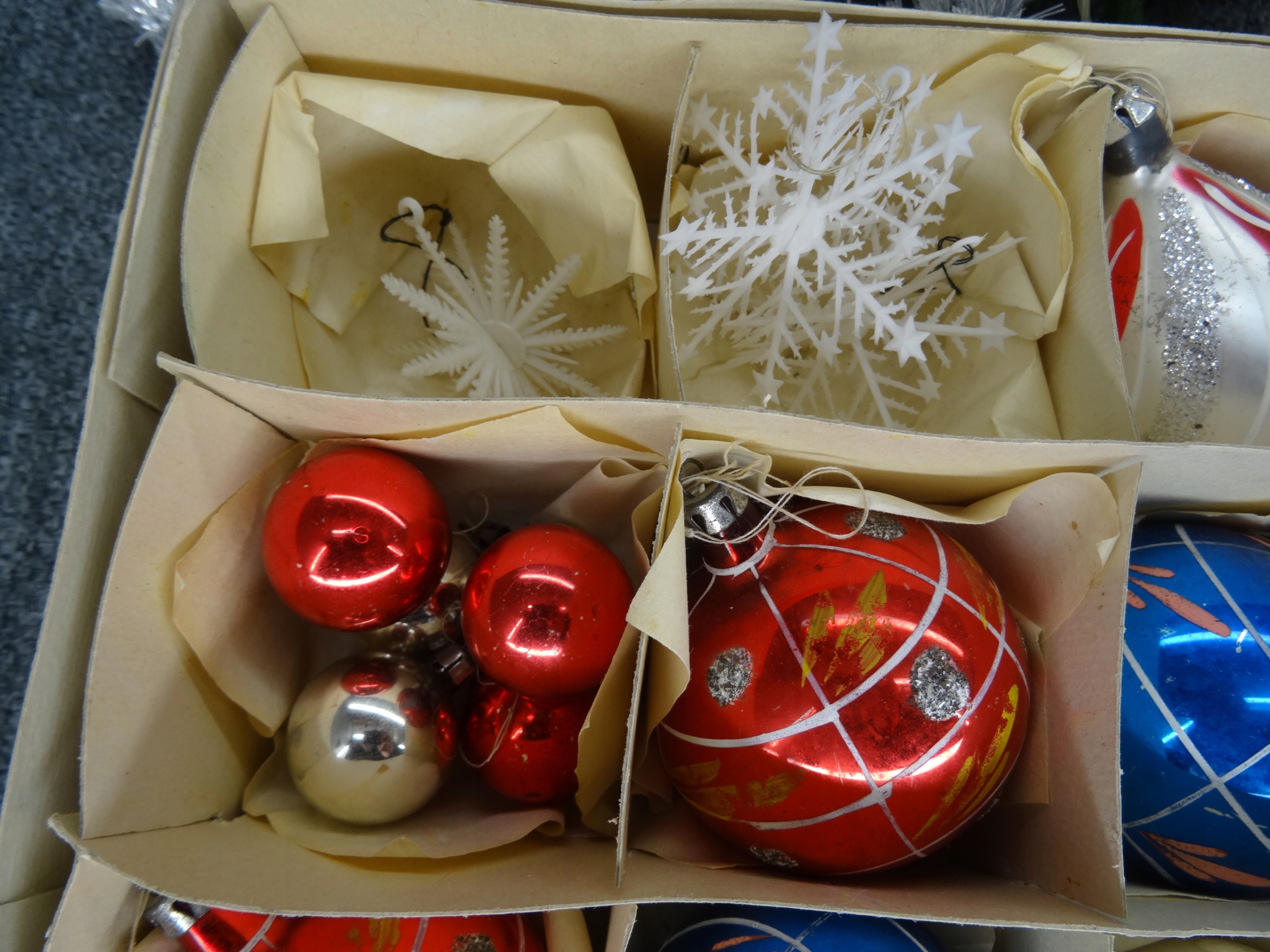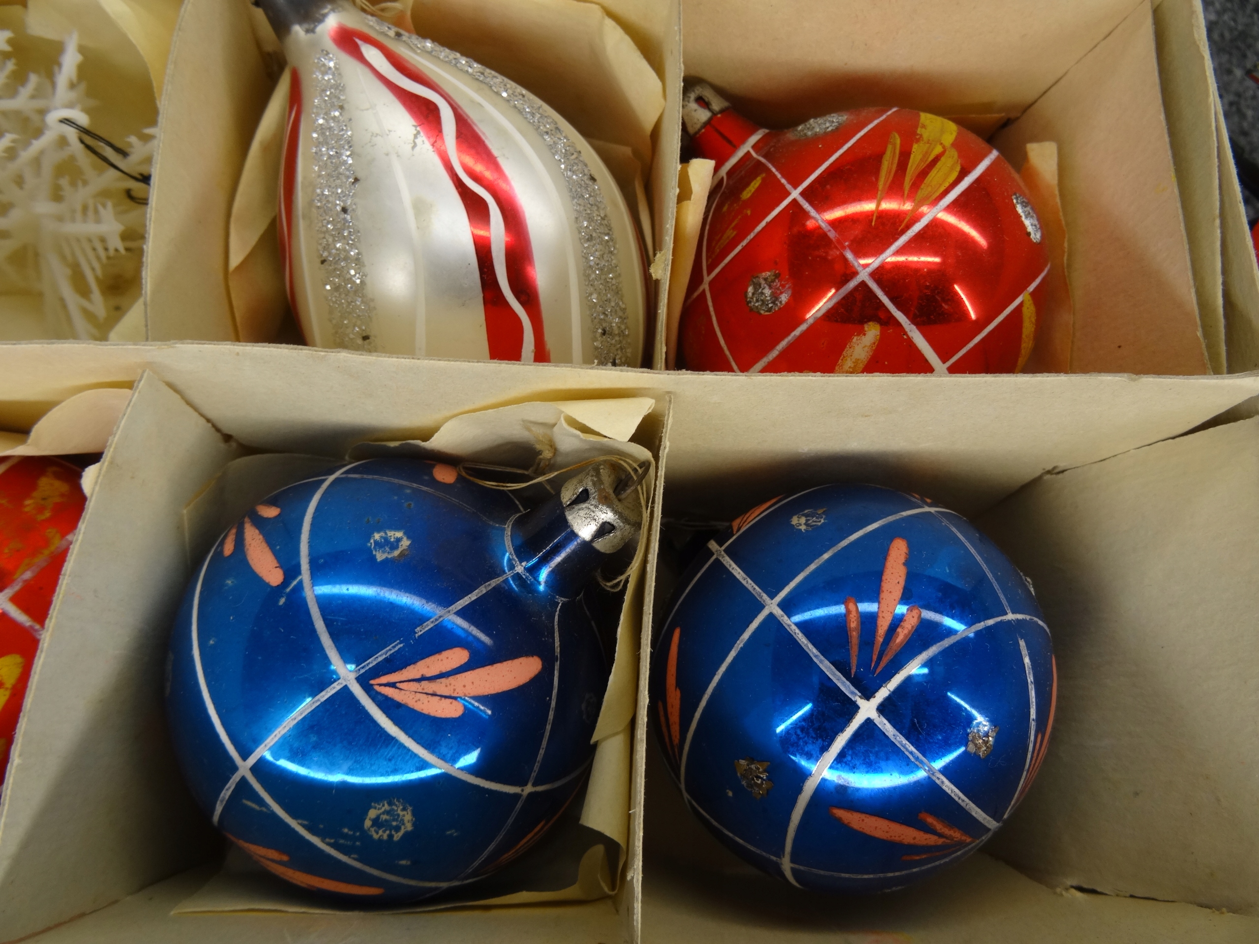 Большой новогодний набор; Елочные игрушки, венки, лампа в виде пингвина, звезды, длинные гирлянды, звезды, елочные вуали. 12 фенечек в пластиковом чехле, остальные стеклянные. Стеклянные безделушки периода Польской Народной Республики.