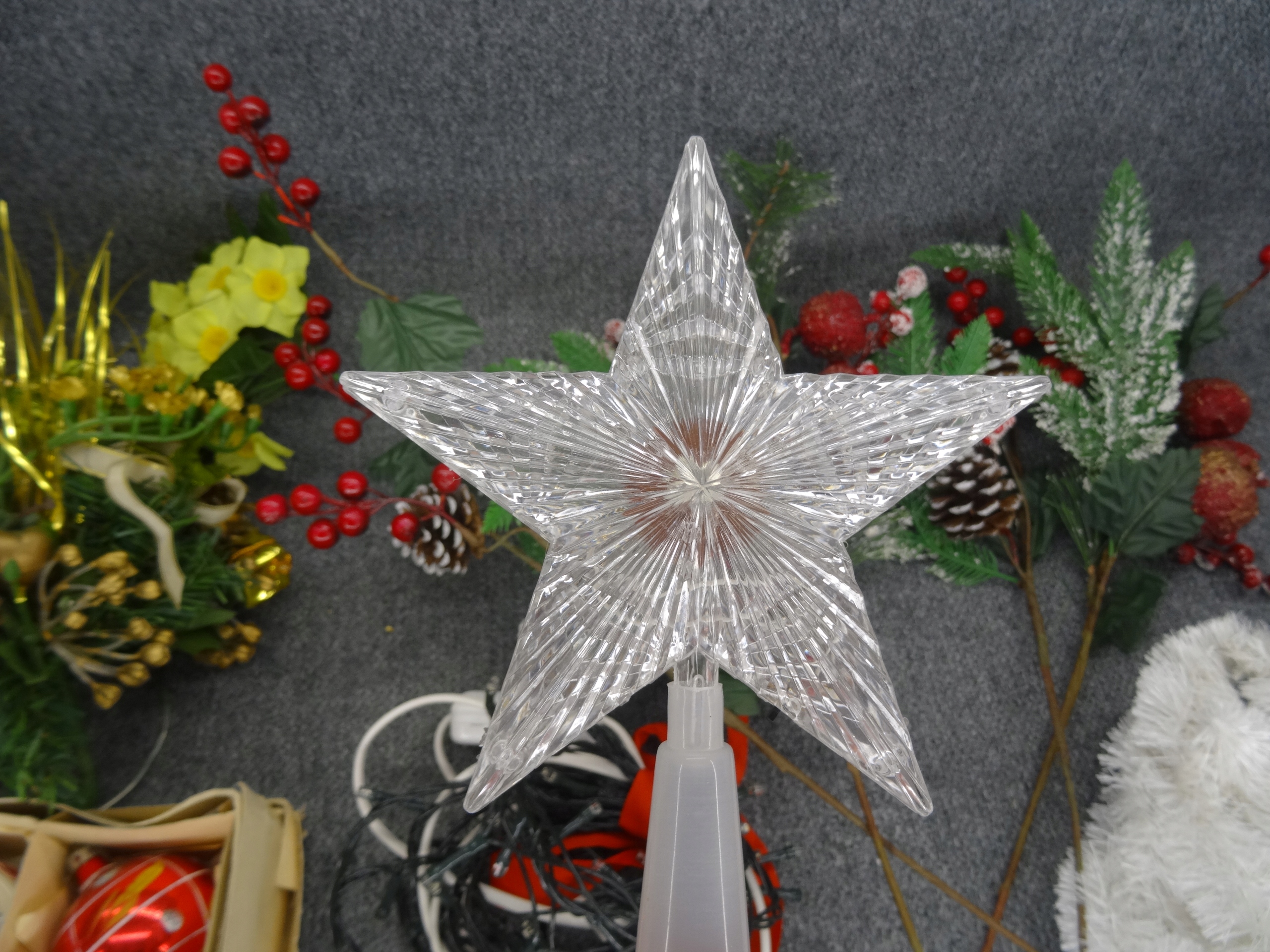 Большой рождественский набор, елочные игрушки, центральные элементы, лампа в виде пингвина, звезды.