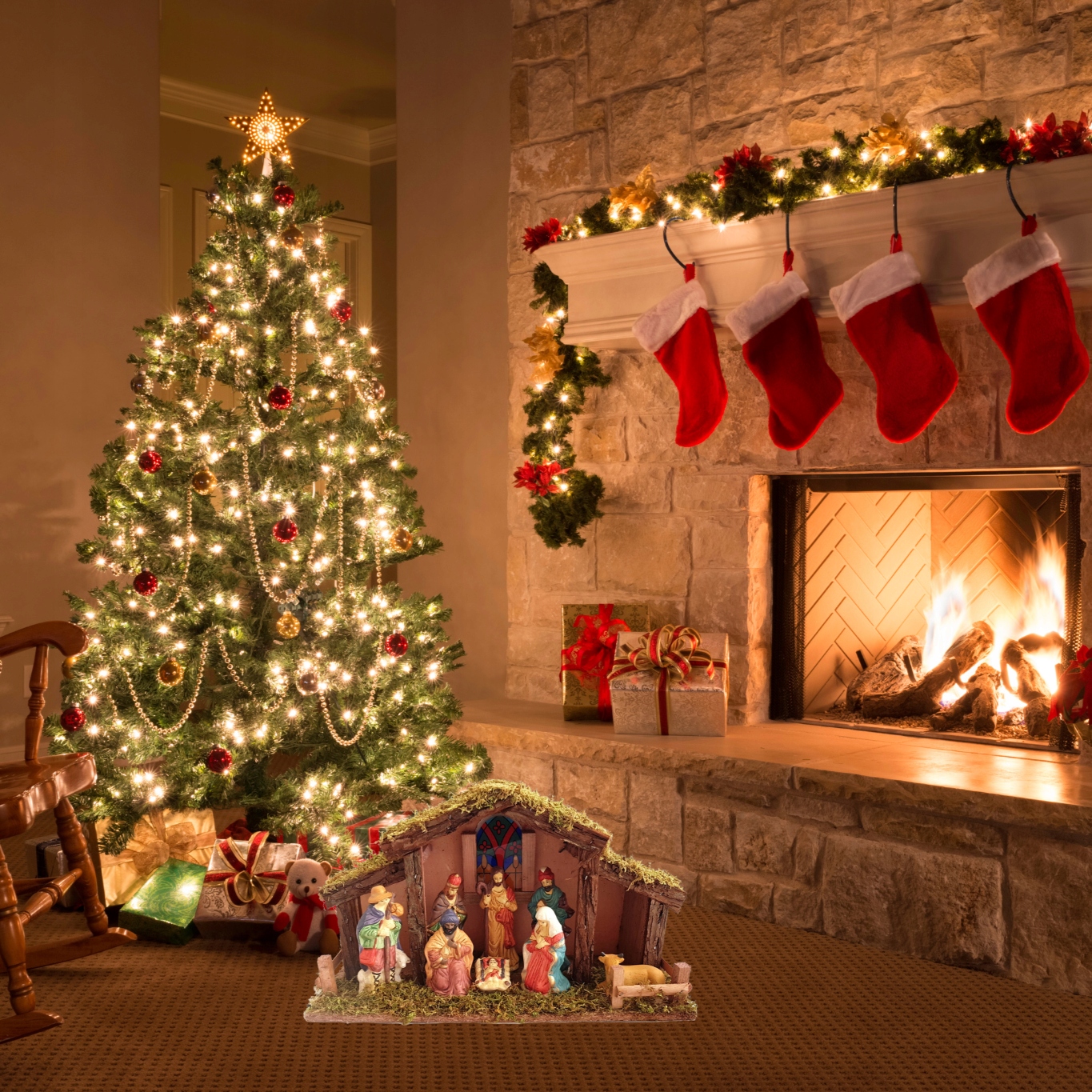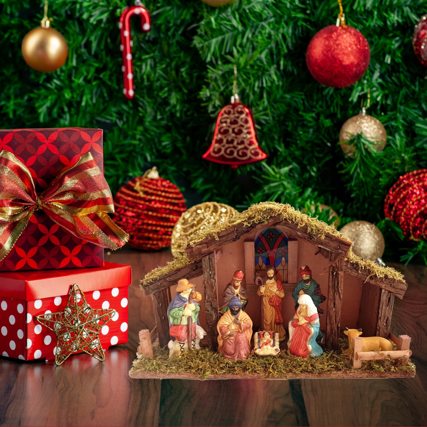 Великий різдвяний вертеп, фігурки, Святе сімейство, стайня під ялинкою