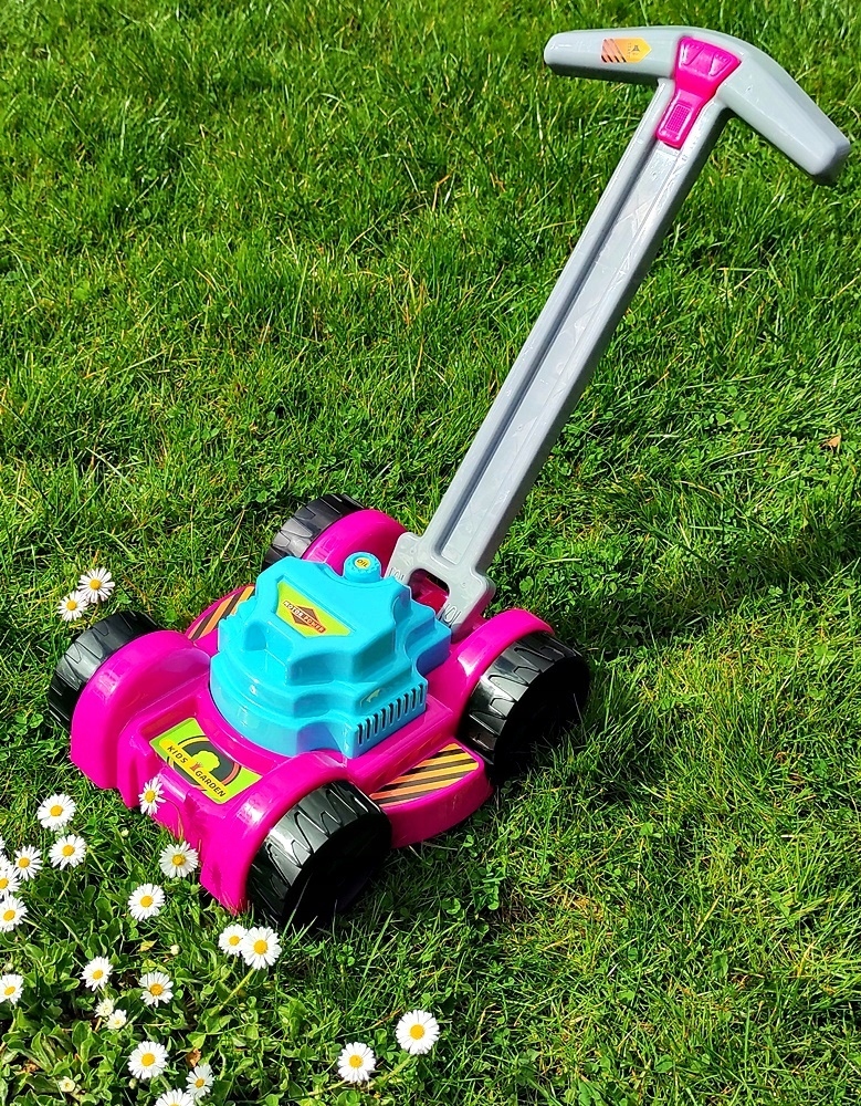- Очень добротно сделанная газонокосилка с крупные и безопасные для ребенка элементы.