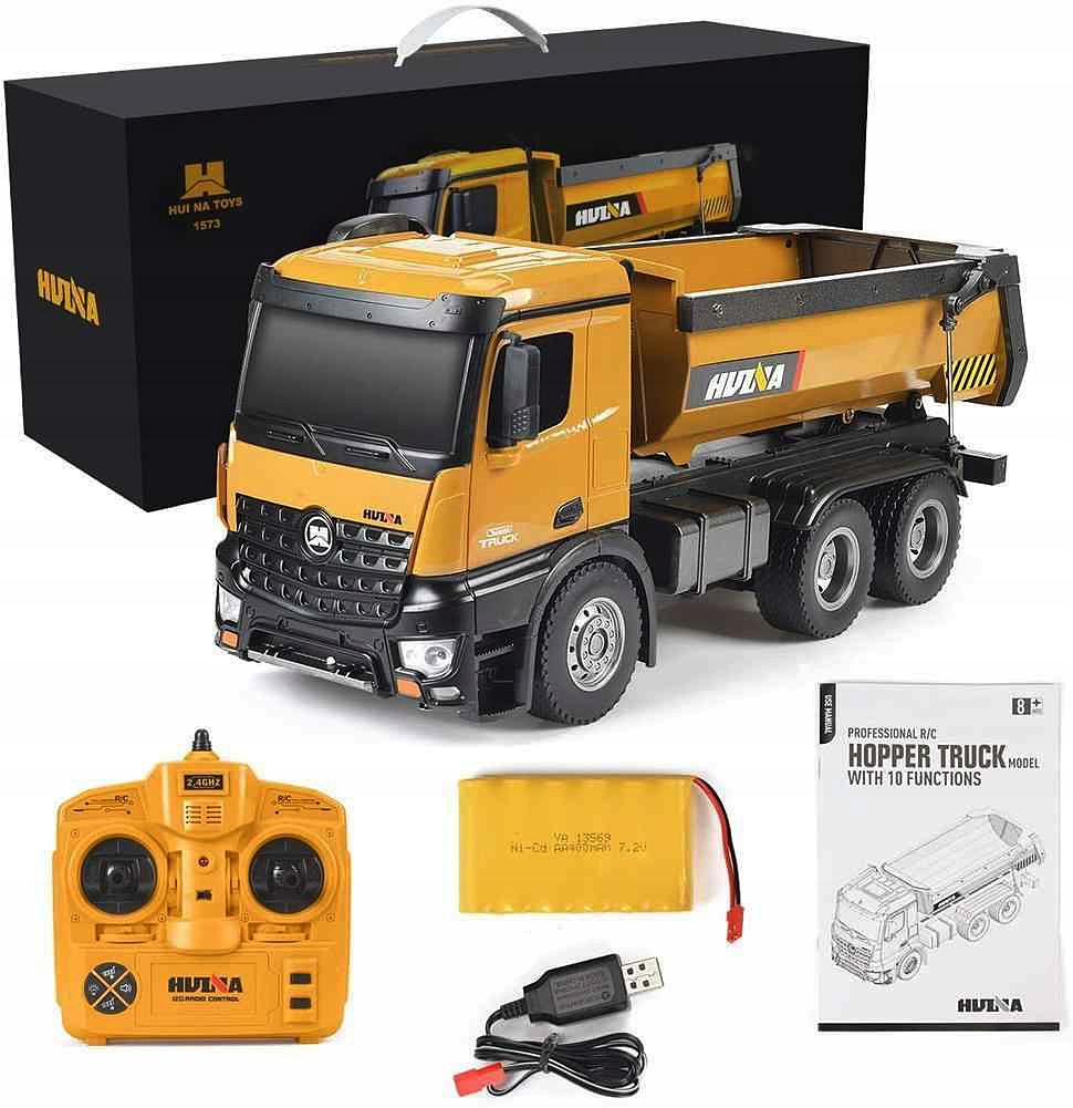 Самосвал марки HUINA — это прекрасно воспроизведенная модель самосвала с дистанционным управлением, изготовленная чрезвычайно точным методом литья под давлением. Его внешний вид и функциональность отражают настоящая строительная машина.