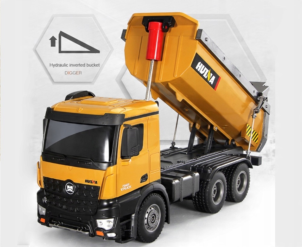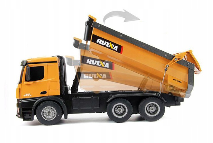 Представленный самосвал марки HUINA представляет собой прекрасно воспроизведенную модель самосвала с дистанционным управлением, изготовленную с использованием чрезвычайно точного метода DIE CAST. Его внешний вид и функциональность отражают настоящую строительную машину.