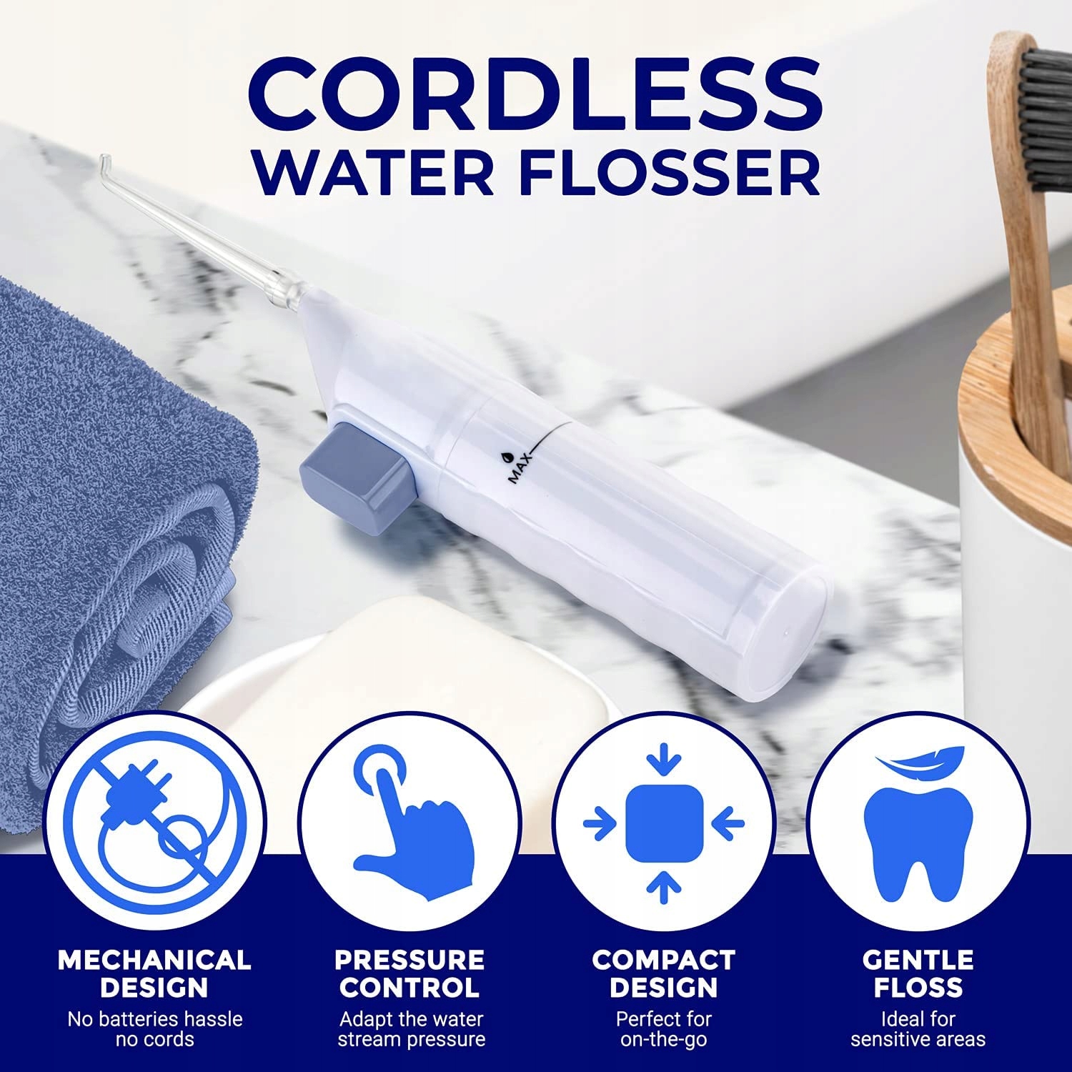 В дополнение к очистителю языка из нержавеющей стали вы также получаете прецизионный ирригатор.