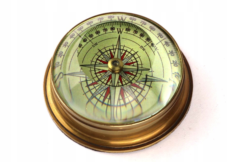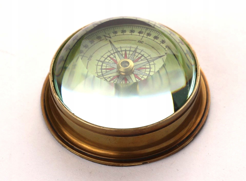 Красивый компас с линзами, создающий иллюзию присутствия жидкости под стеклом.