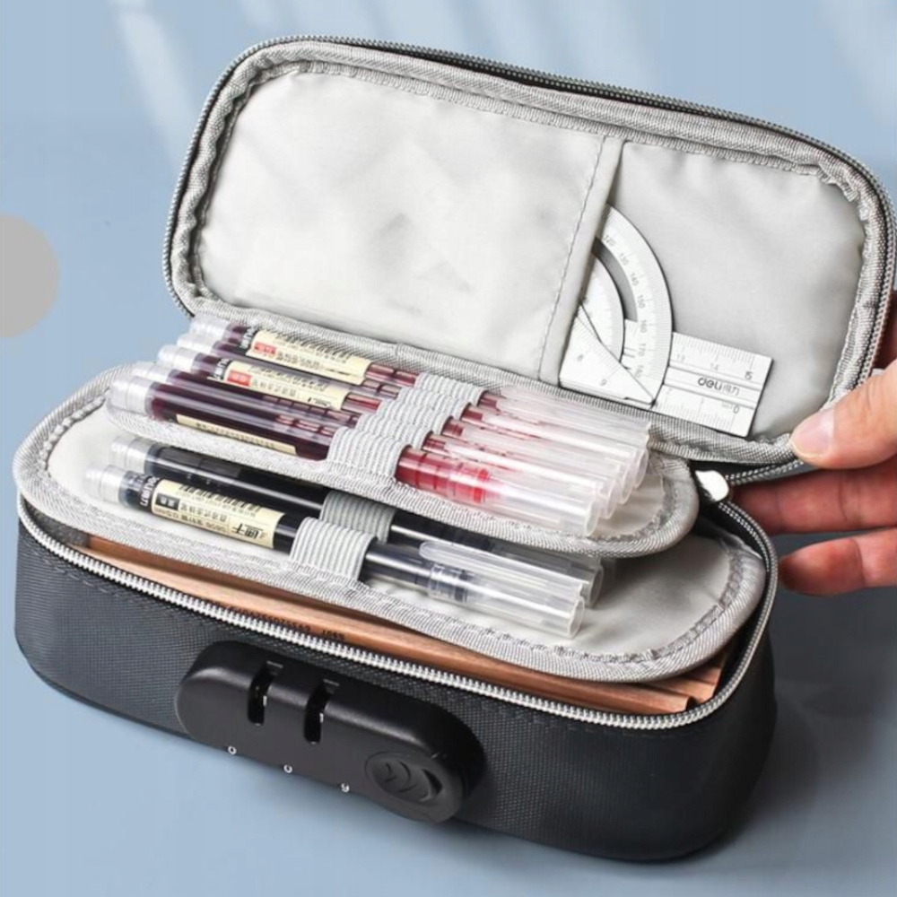 Вы ищете функциональное и безопасное решение для вашей школы или офиса? Пенал с замком – идеальный выбор для всех, кто ценит порядок и безопасность. Пенал, оснащенный специальным кодовым замком, гарантирует, что ваши ручки, карандаши и другие аксессуары всегда будут в безопасности. Компактный дизайн, отделения на шнурке и водонепроницаемость делают его не только практичным, но и надежным выбором для студентов и профессионалов.