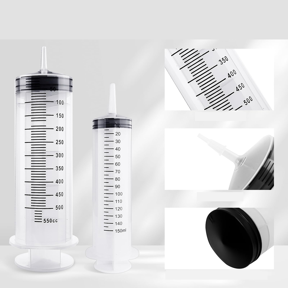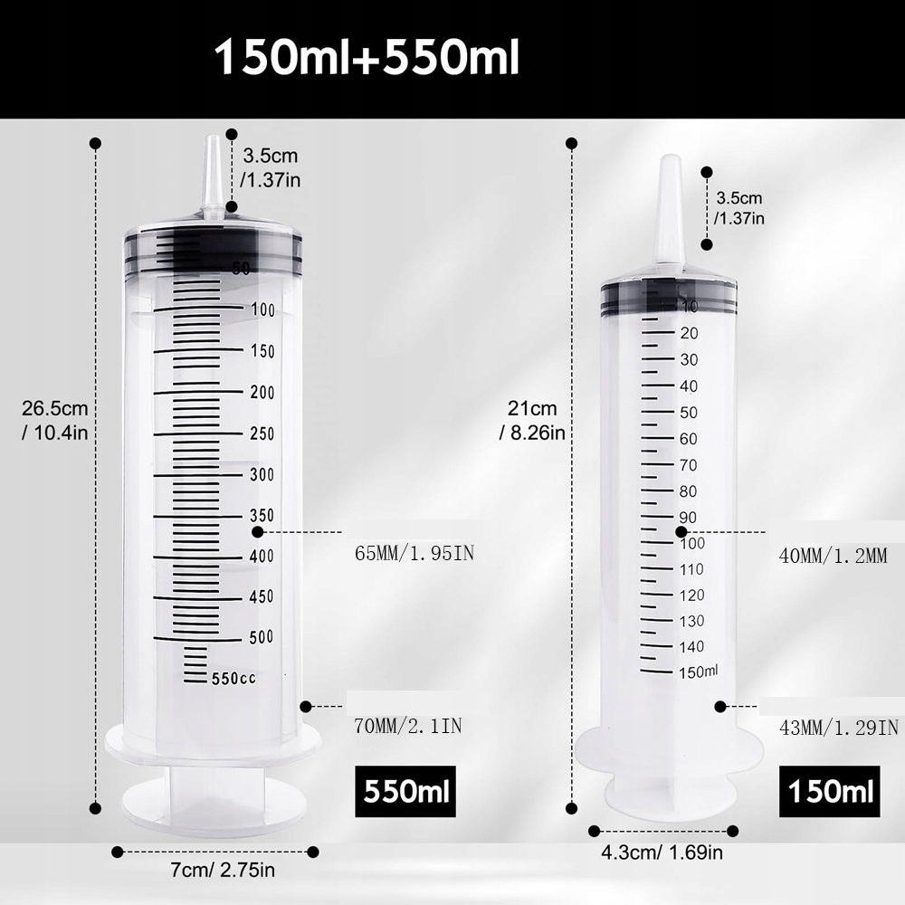 💉💉 【Точная шкала】 шприц имеет диапазон измерения 150 мл, 550 мл, а корпус бутылки отмечен чистой шкалой, которая подходит для чтения при заполнении жидкости. Точная шкала обеспечивает точность инъецированной жидкости.